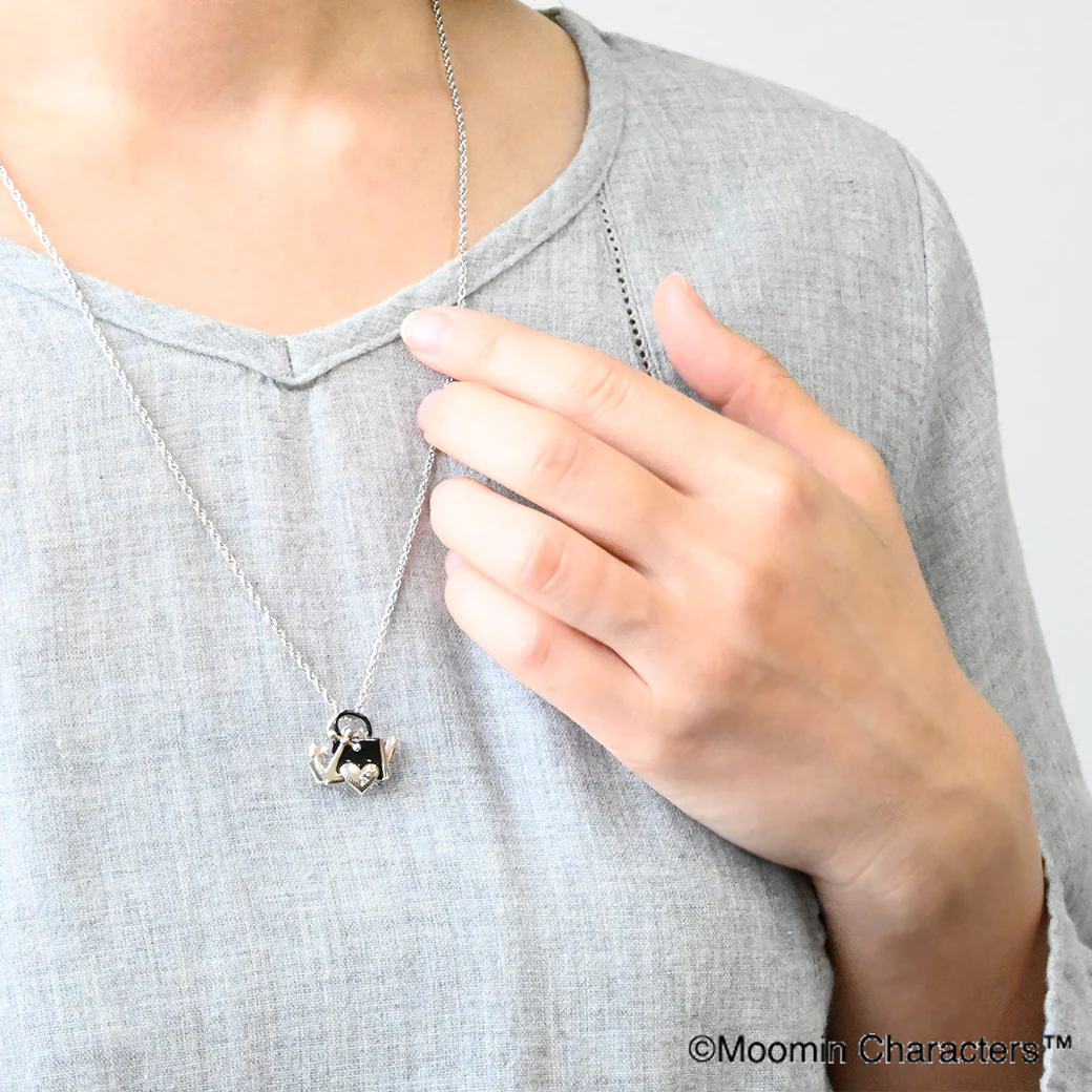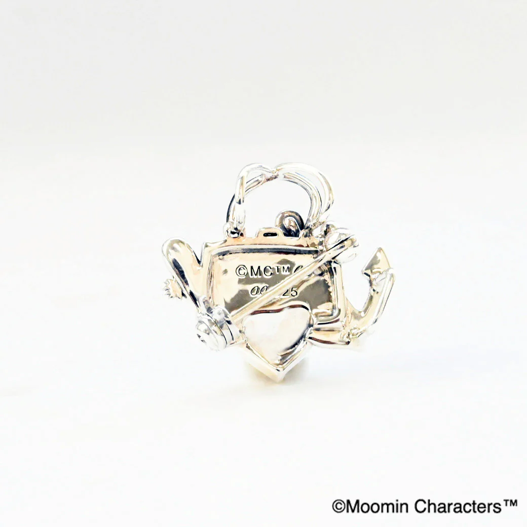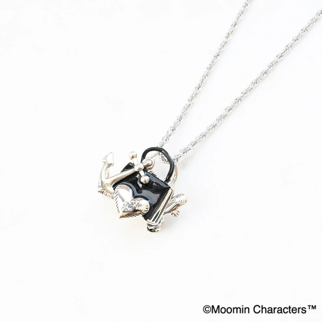 出会いのきっかけとなったムーミンママのバッグをモチーフに黒エナメル仕上げ、ニョロニョロと錨、ハートがぎゅっと集まった、とてもかわいらしいブローチペンダントです。