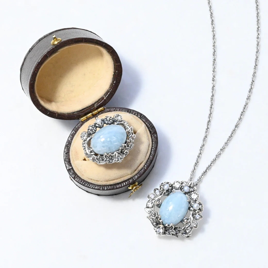 | 素材 | SV925 Aquamarine、White Topaz、Pearl |