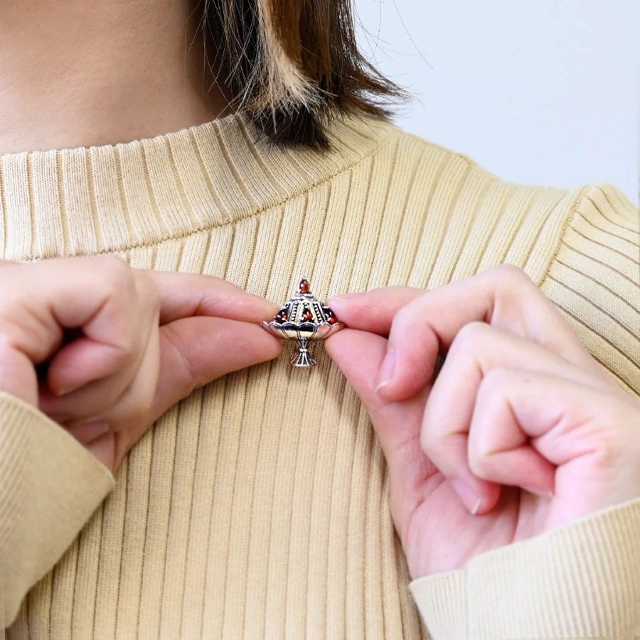 パフェをイメージした優雅なデザインが特徴のペンダントブローチです。
