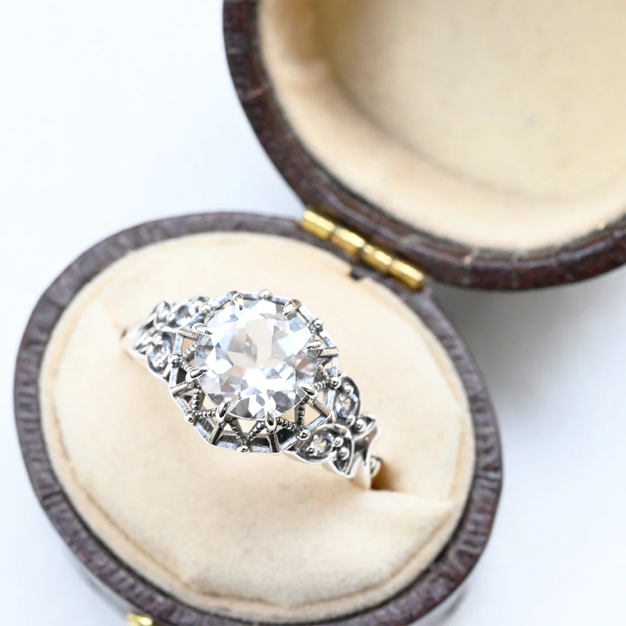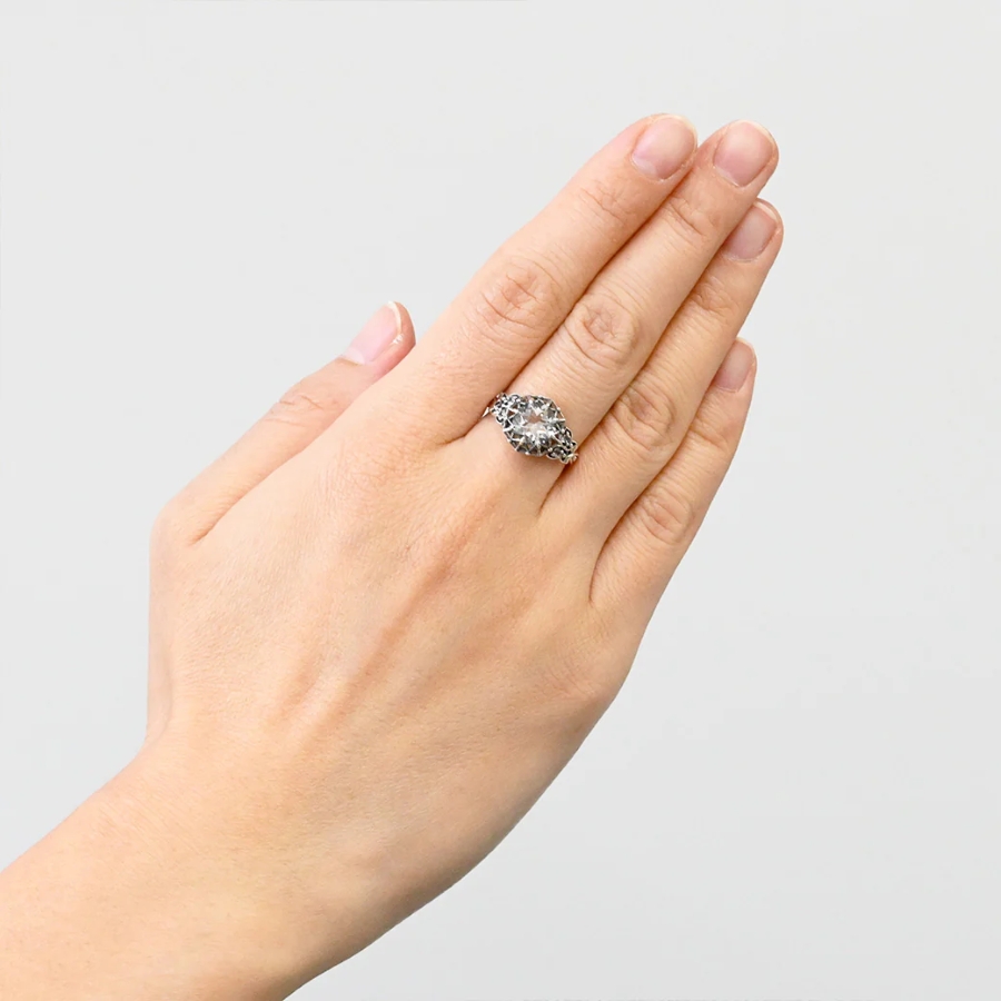 【202R1139】SV クリスタル&ホワイトトパーズ ノルディック・ライト リング