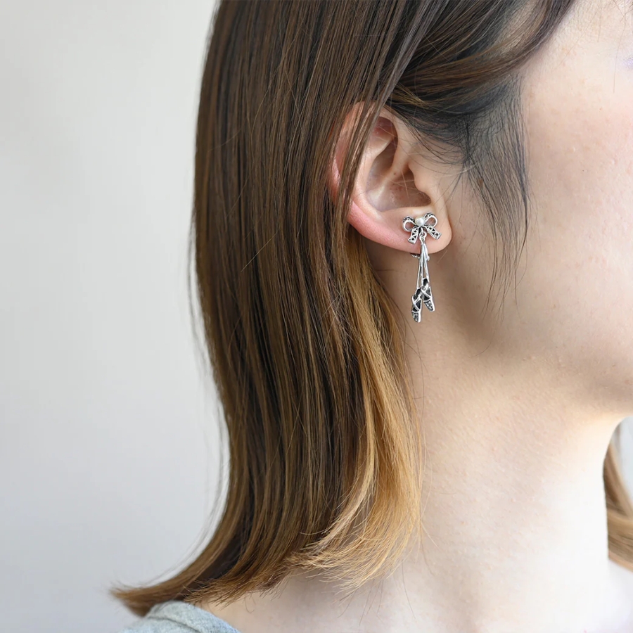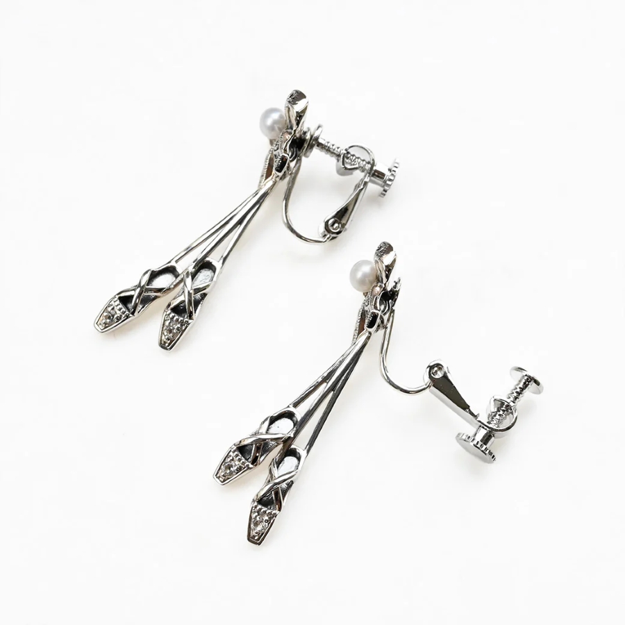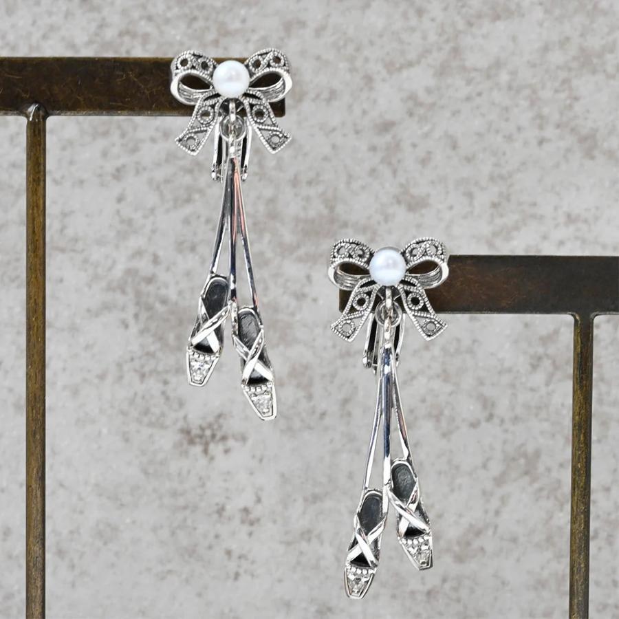 【204E0752-WTF】SV パール 夢みる踊り子のリボン&トゥシューズ イヤリング/ピアス