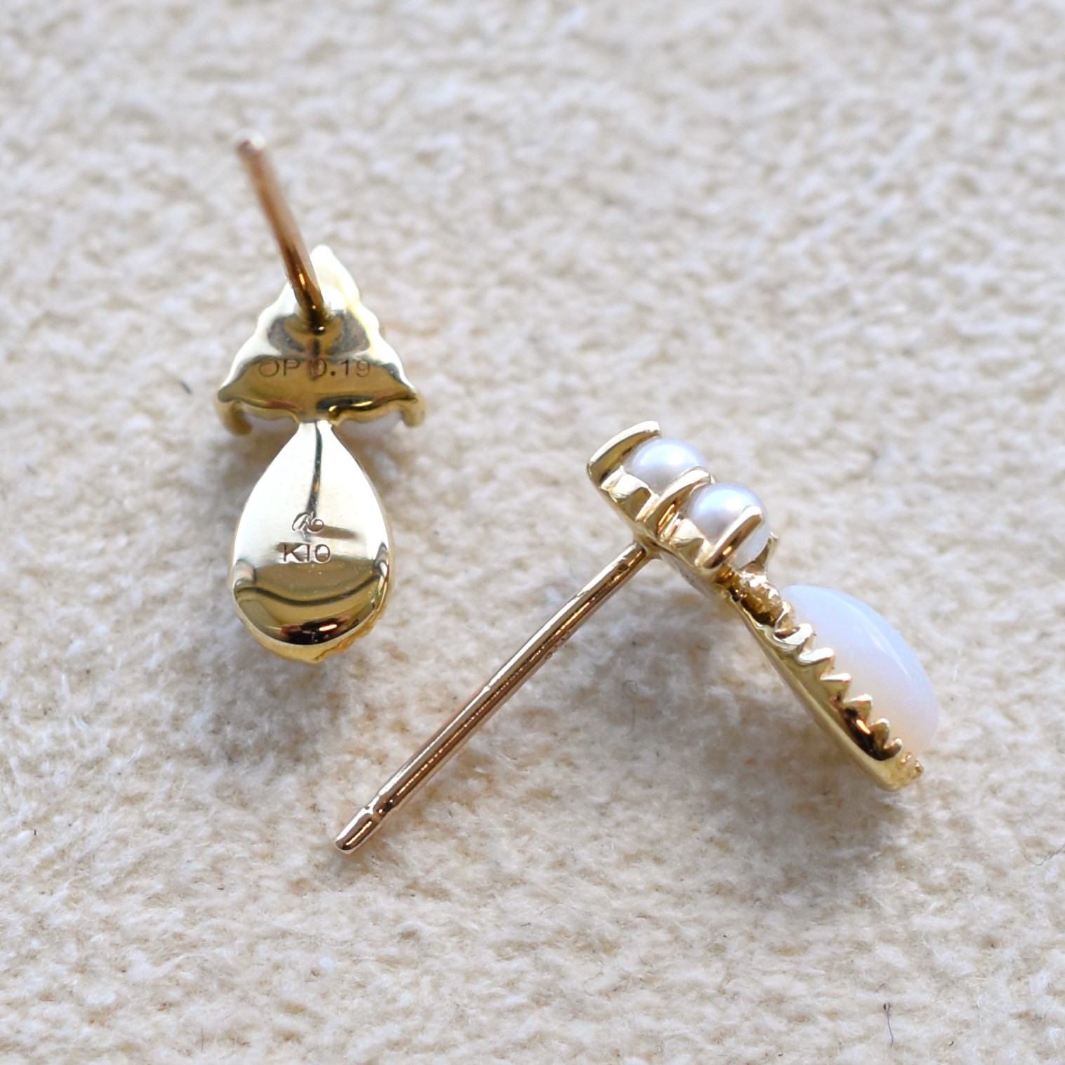 【109E0023-1-OP】K10YG 蛋白石&淡水珍珠 耳釘(オパール&淡水パール ピアス)