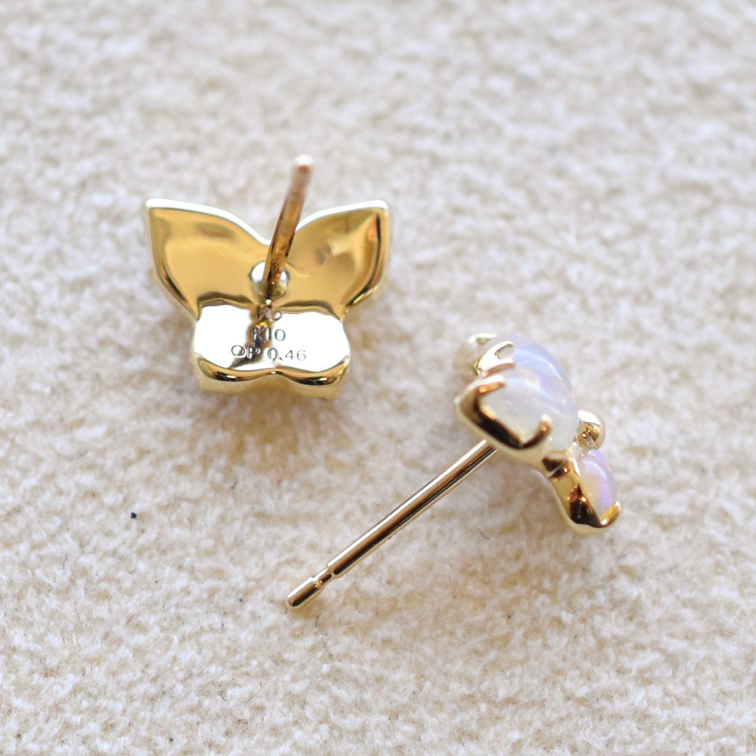 【109E0026-1-OP】K10YG 蛋白石&淡水珍珠 蝴蝶 耳釘(オパール&淡水パール 蝶々 ピアス)