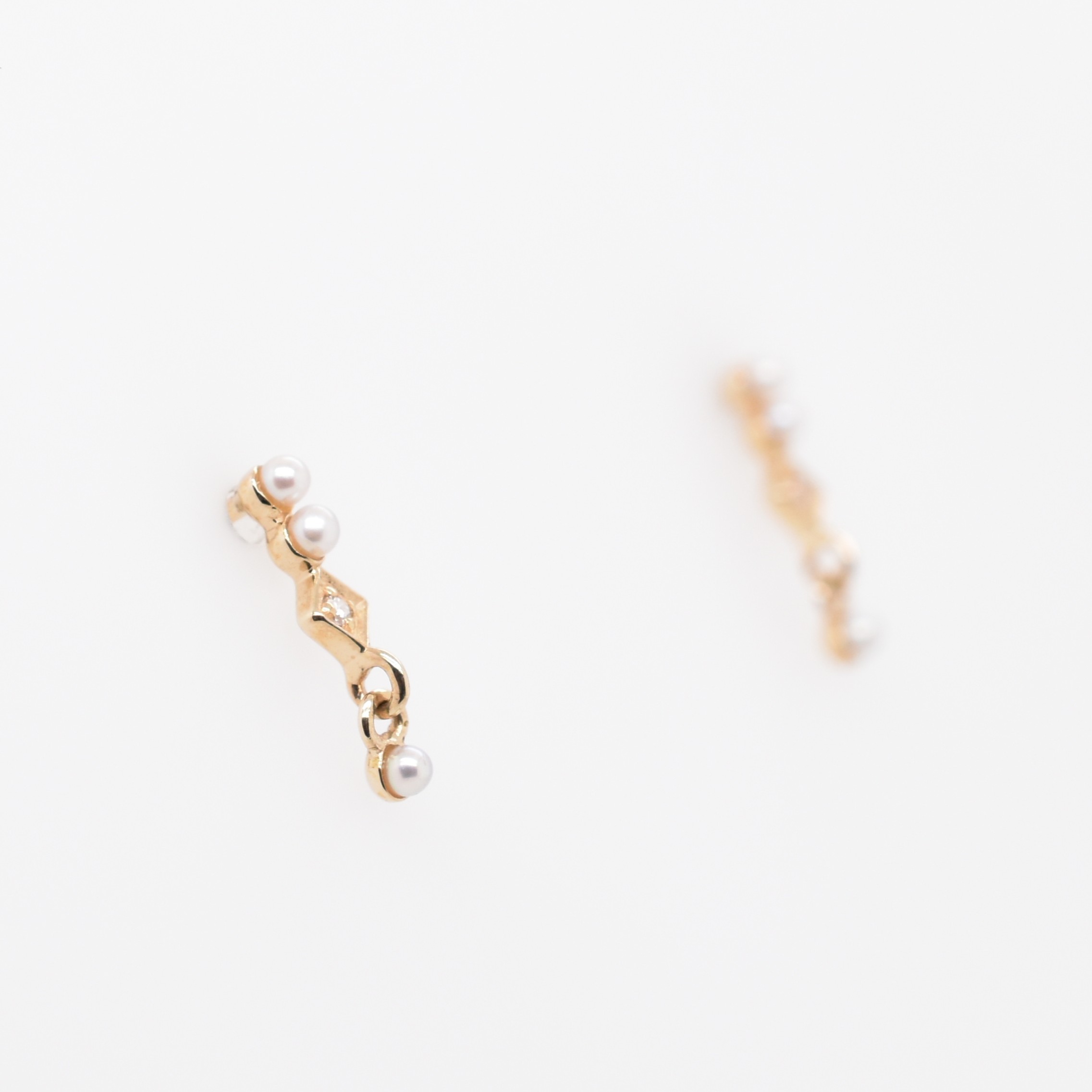 【109E0040-1】K10YG 鑽石&淡水珍珠 耳釘(ダイヤモンド&淡水パール ピアス)