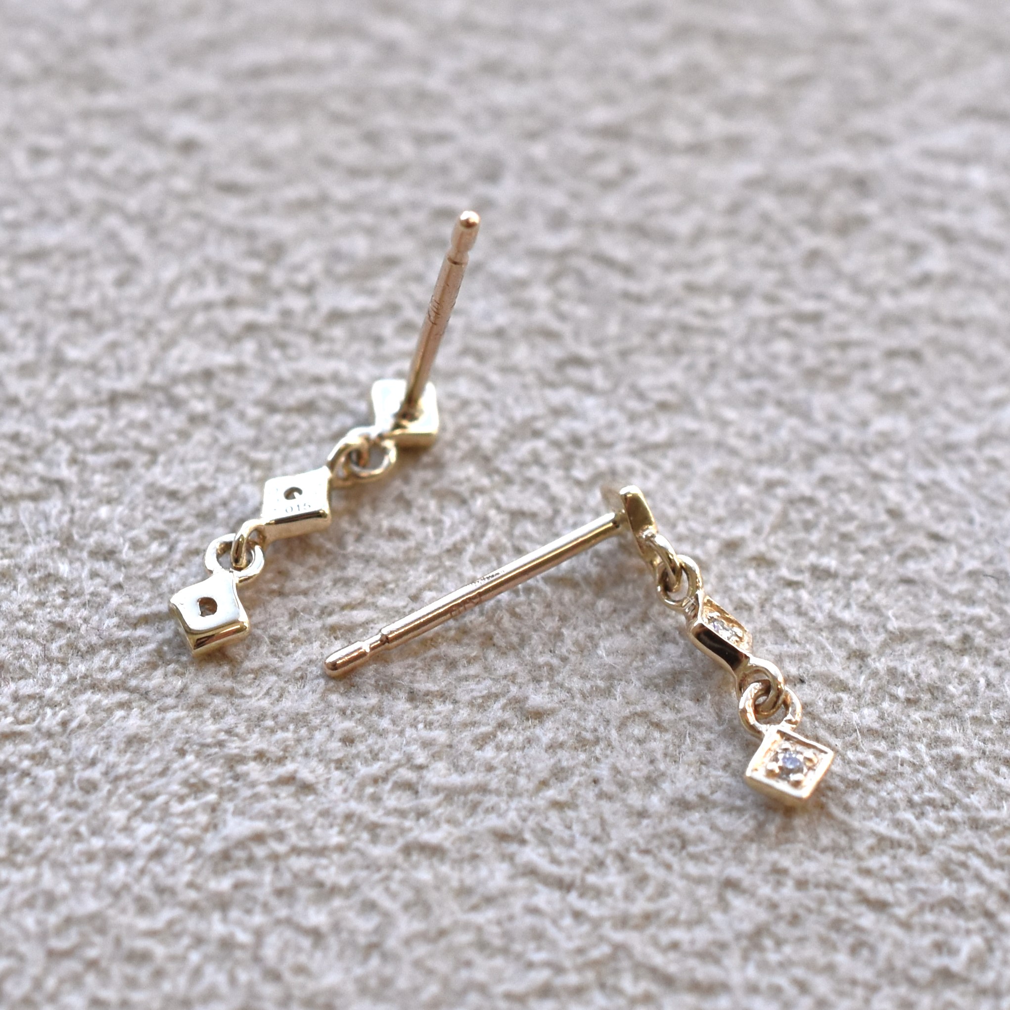 【109E0043-1】K10YG 鑽石 耳釘(ダイヤモンド ピアス)
