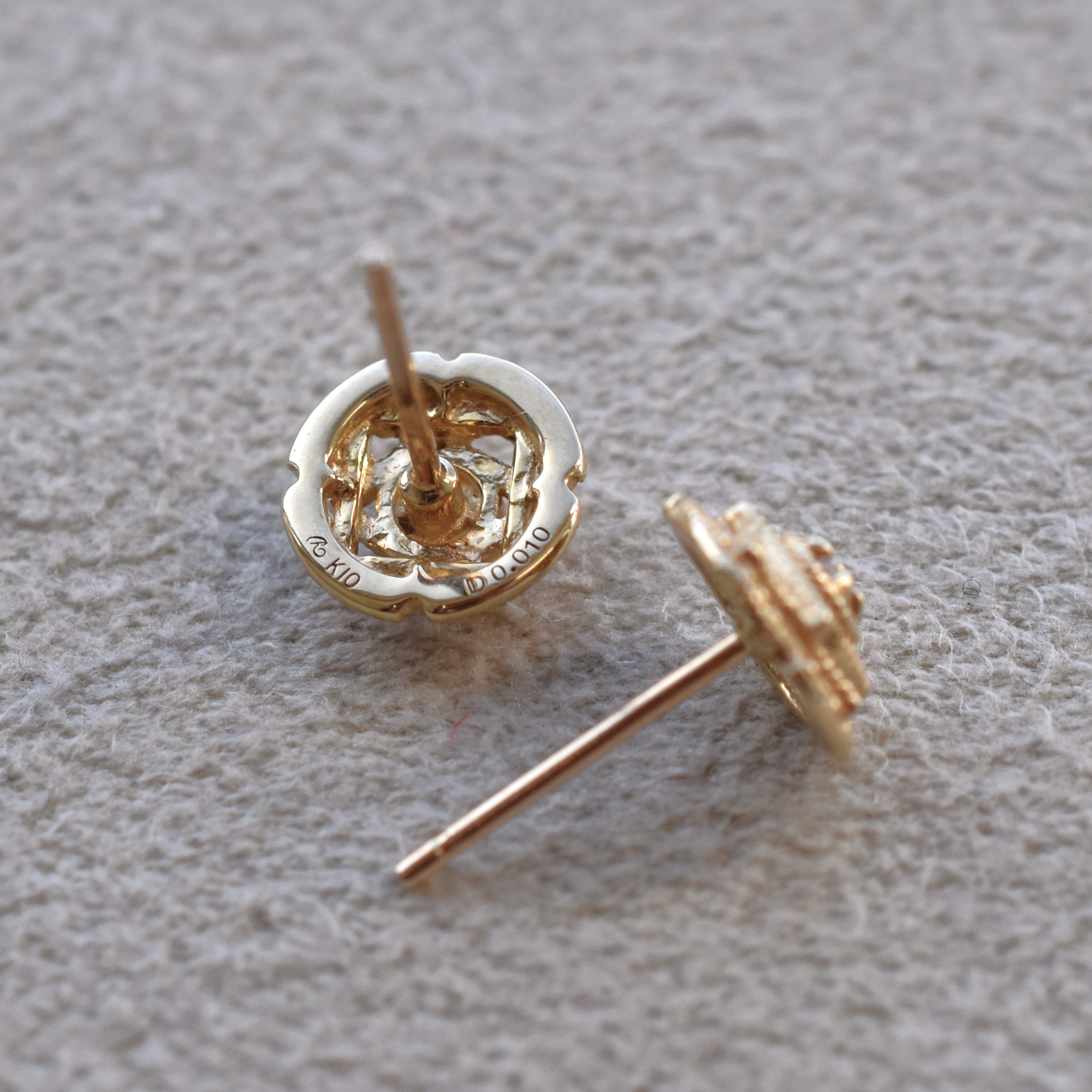 【109E0089-1】K10YG 鑽石 圓 耳釘(ダイヤモンド 円形 ピアス)