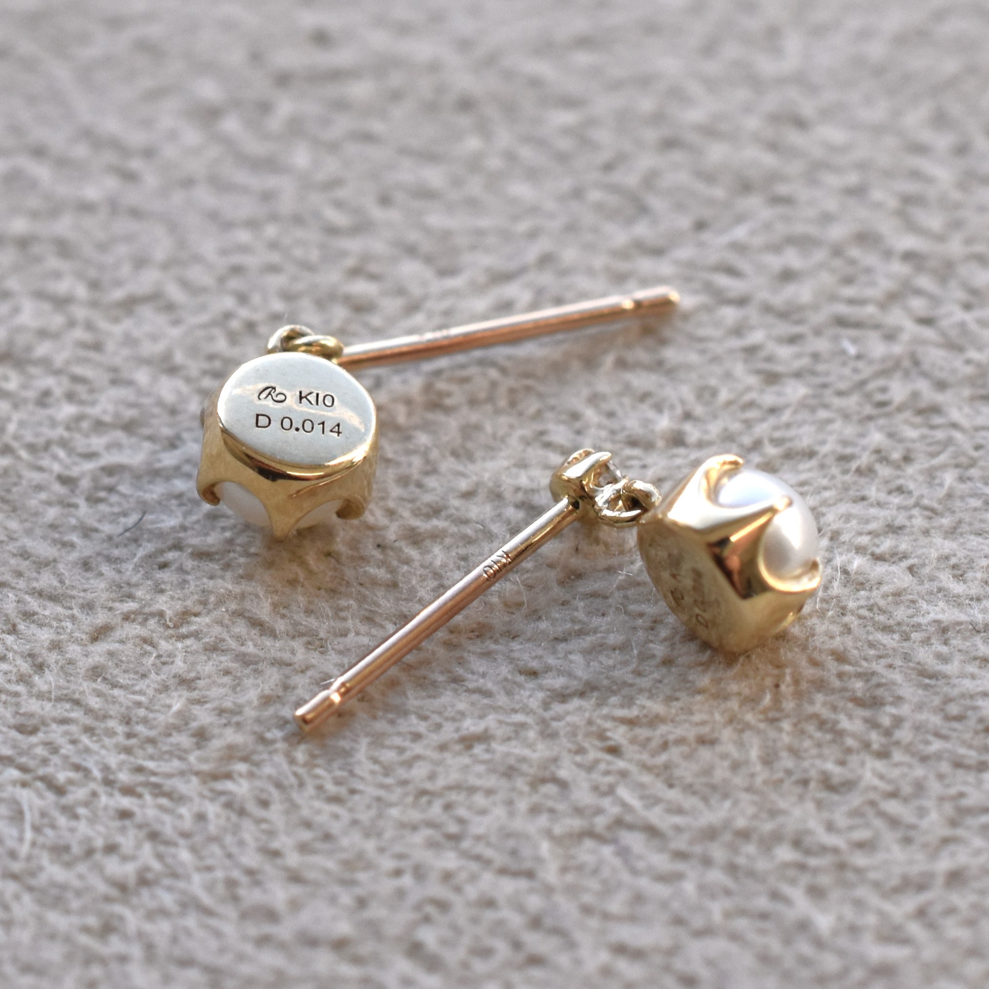 【109E0100-1】K10YG 淡水珍珠&鑽石 耳釘(淡水パール&ダイヤモンド ピアス)