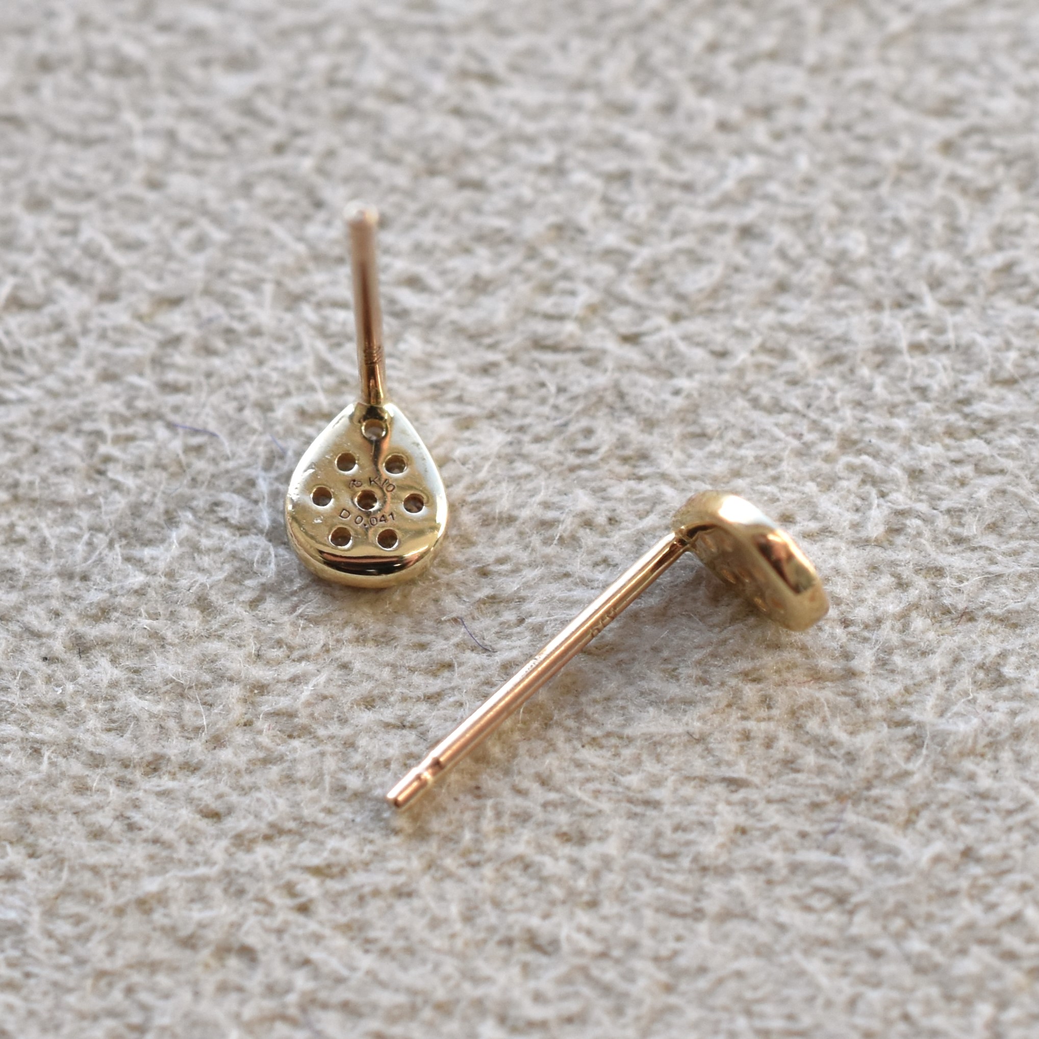 【109E0101-1】K10YG 鑽石 水滴 耳釘(ダイヤモンド ドロップ ピアス)