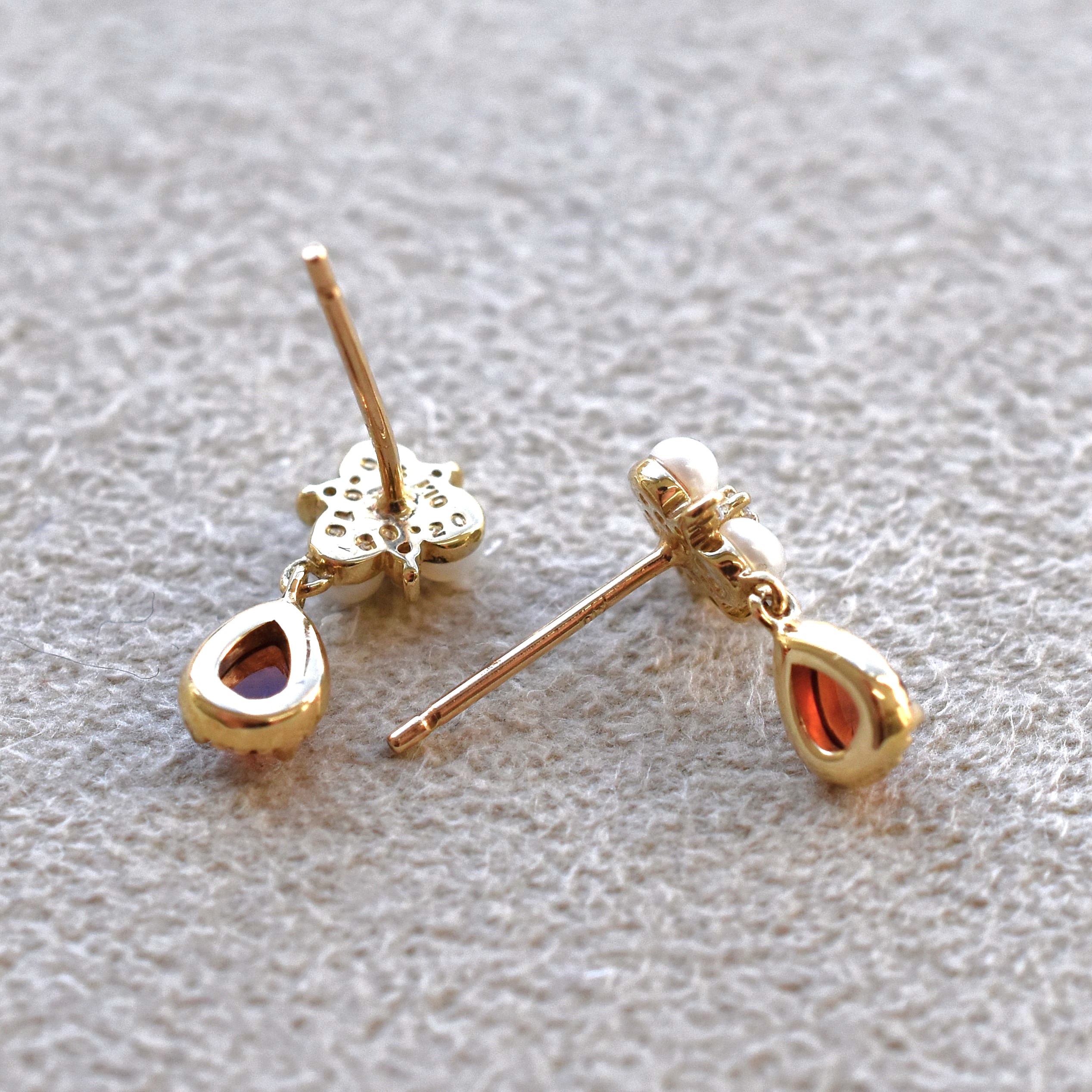 【109E0108-1-GC】K10YG 石榴石&淡水珍珠 耳釘(ガーネット&淡水パール ピアス)
