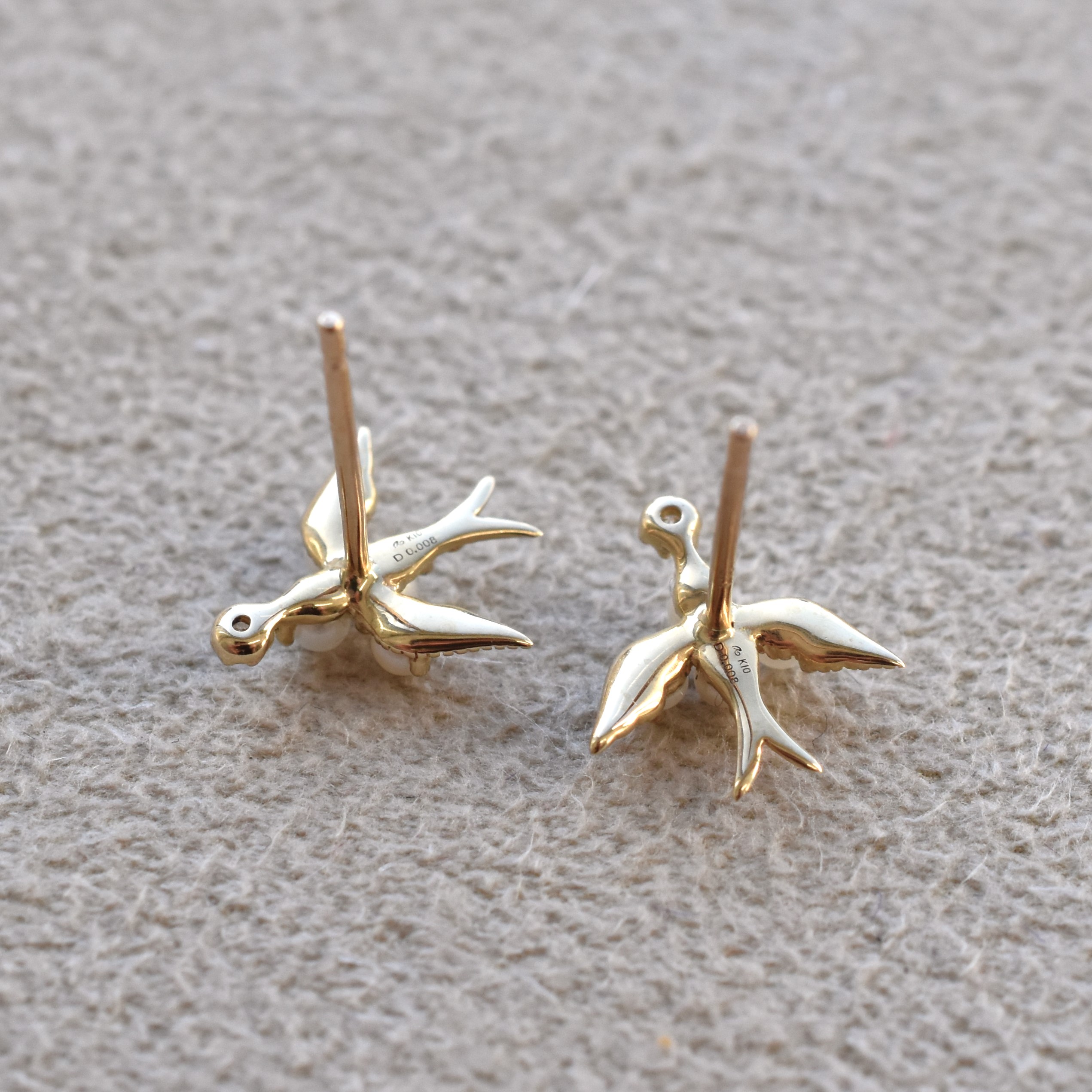 【109E0143-1】K10YG 鑽石&淡水珍珠 燕子 耳釘(ダイヤモンド&淡水パール ツバメ ピアス)