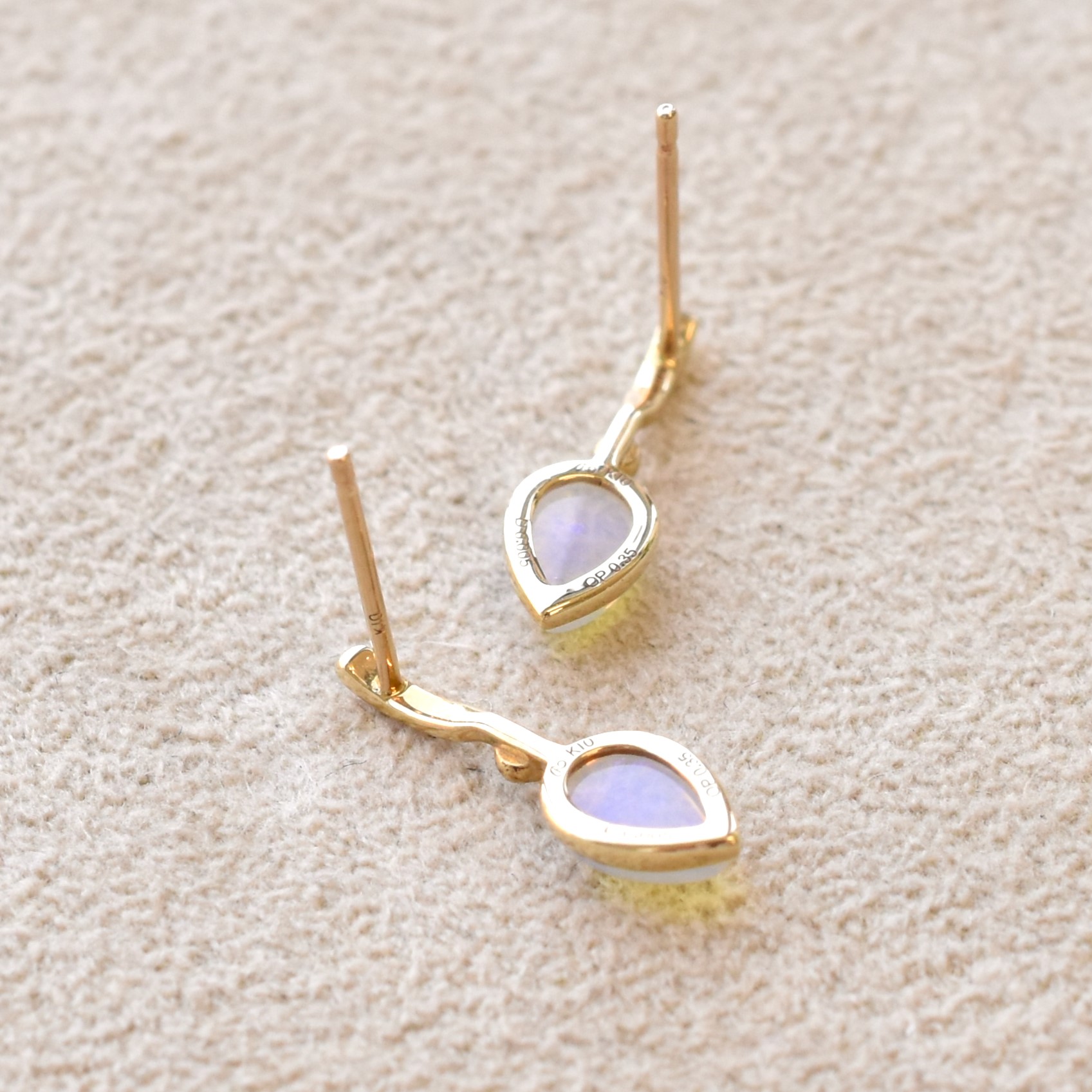 【109E0180-1-OP】K10YG 蛋白石&鑽石 耳釘(オパール&ダイヤモンド ピアス)