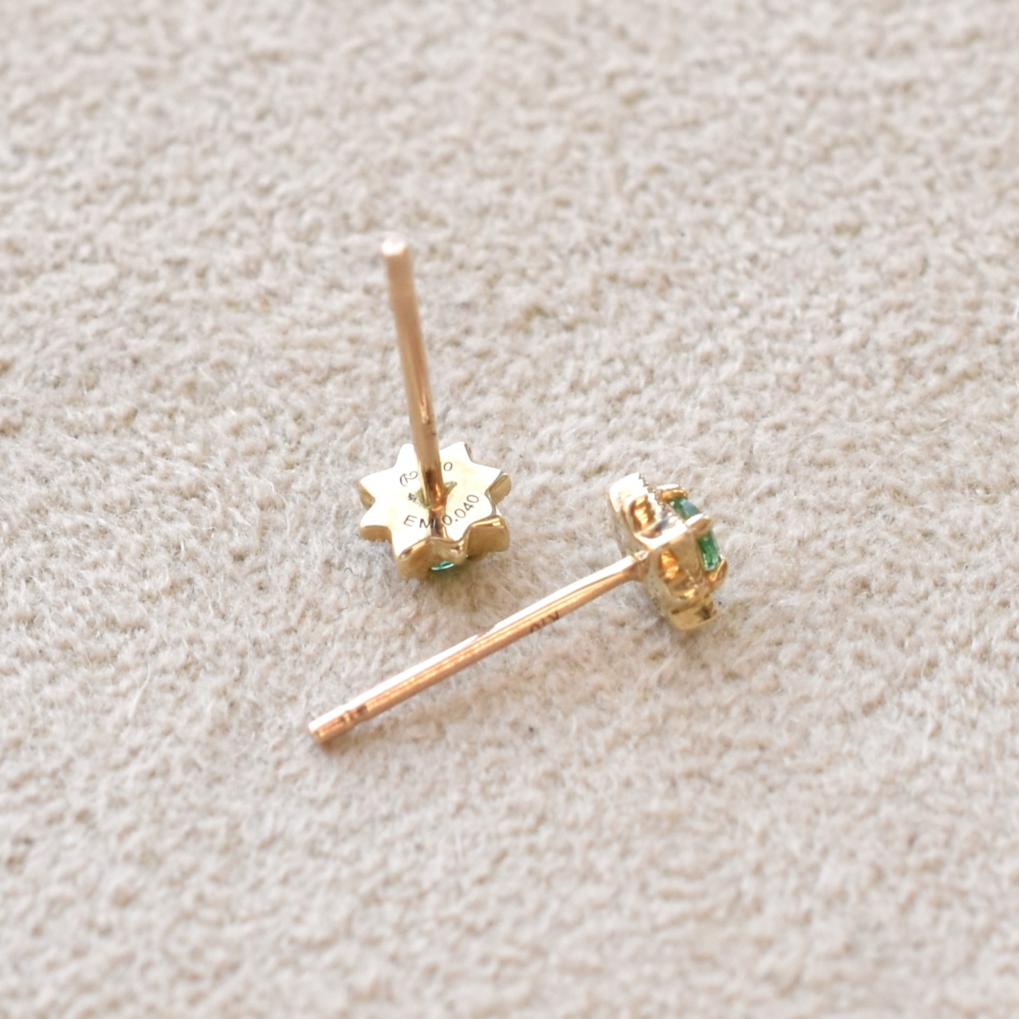 【109E0183-1-EMF】K10YG 祖母綠 星 耳釘(エメラルド 星 ピアス)
