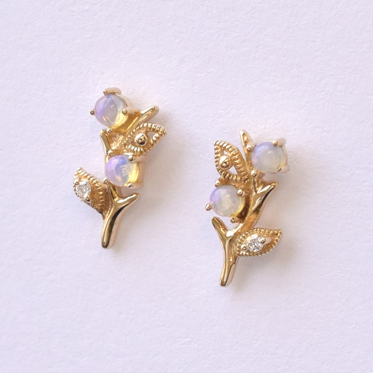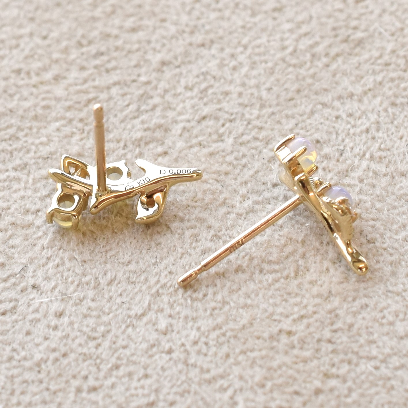 【109E0207-1】K10YG 蛋白石&鑽石 小植物 耳釘(オパール&ダイヤモンド 小枝 ピアス)