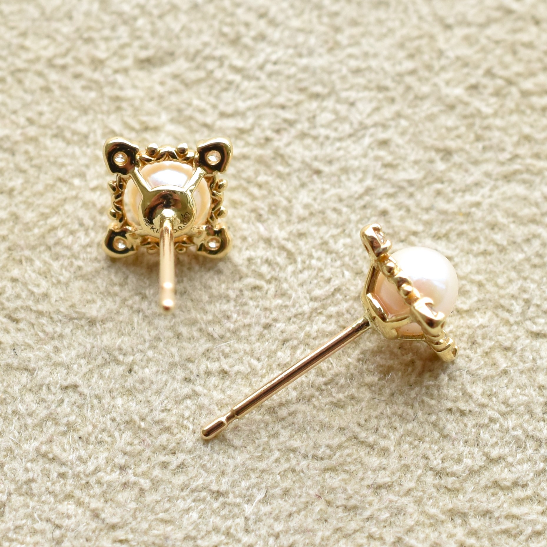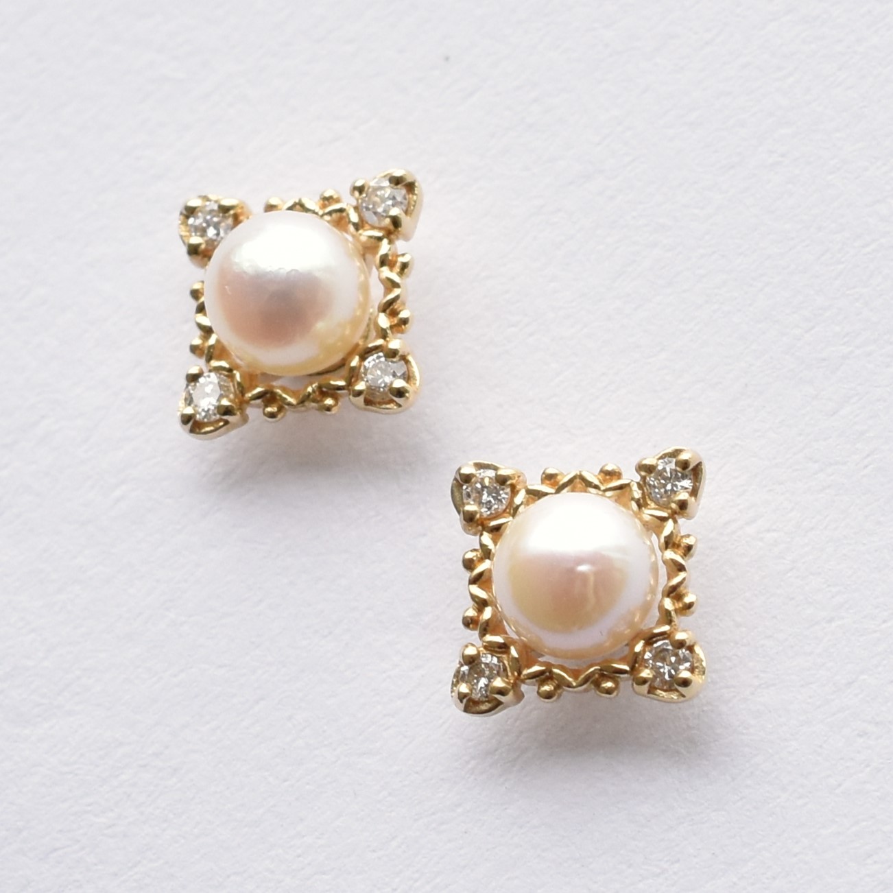 【109E0229-1-TY】K10YG 阿古屋珍珠&鑽石 耳釘(アコヤパール&ダイヤモンド ピアス)