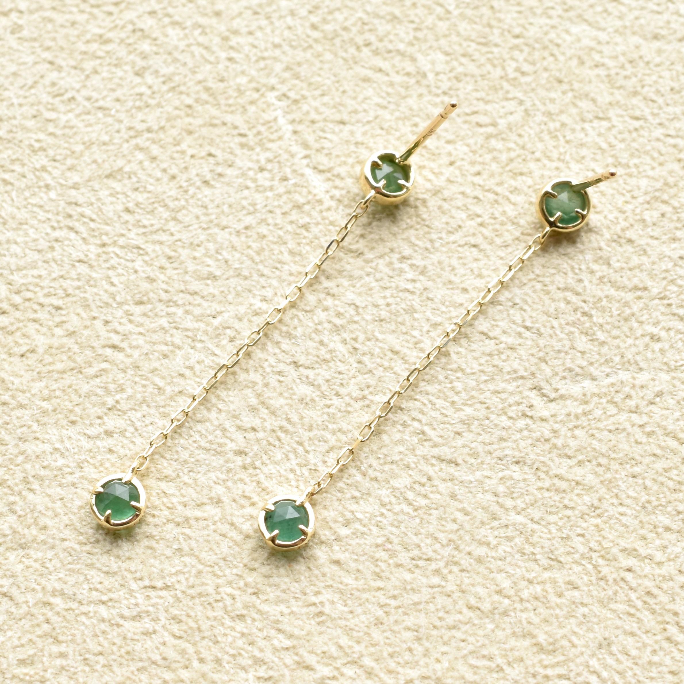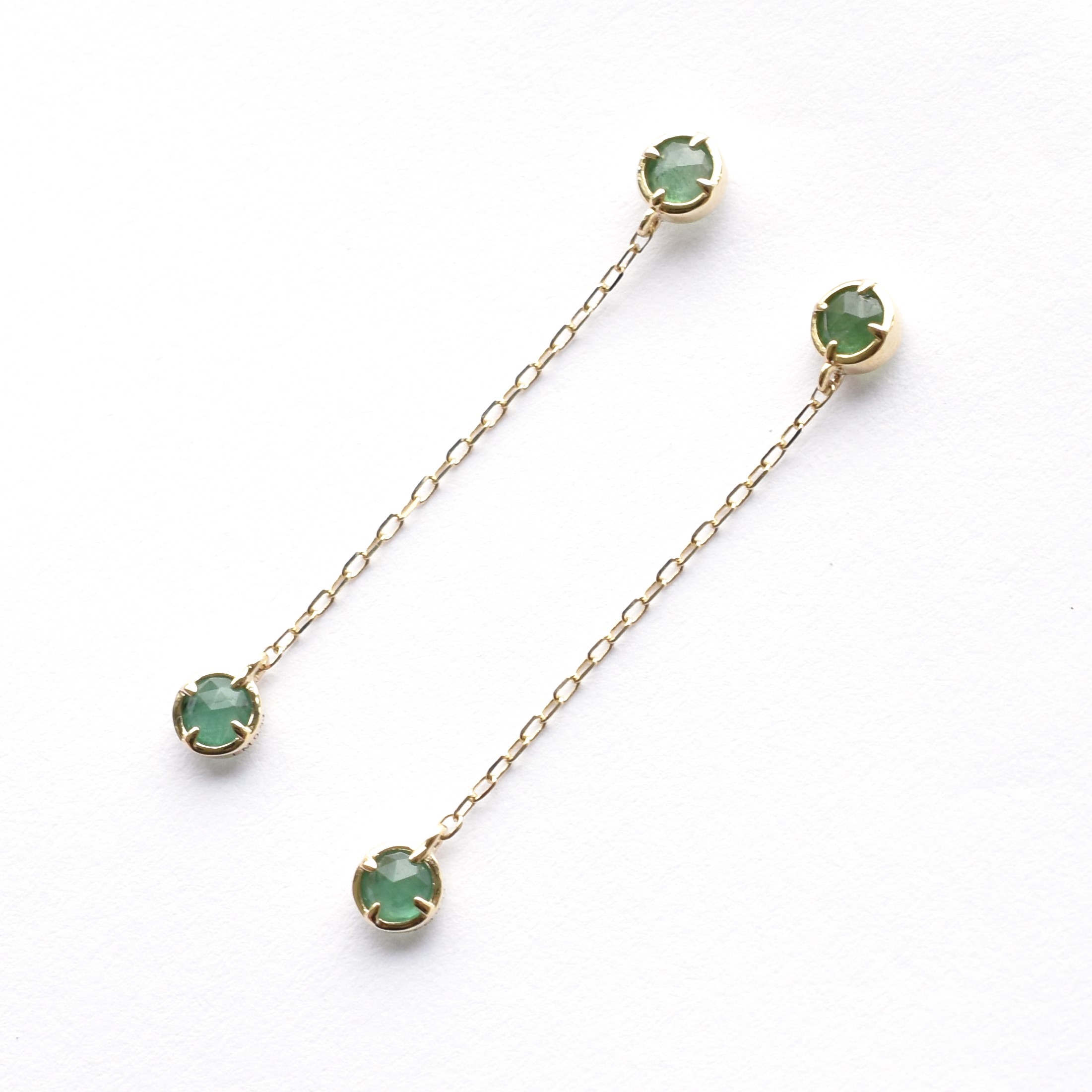 【109E0234-1-EM-TY】K10YG 祖母綠 耳釘(エメラルド ピアス)