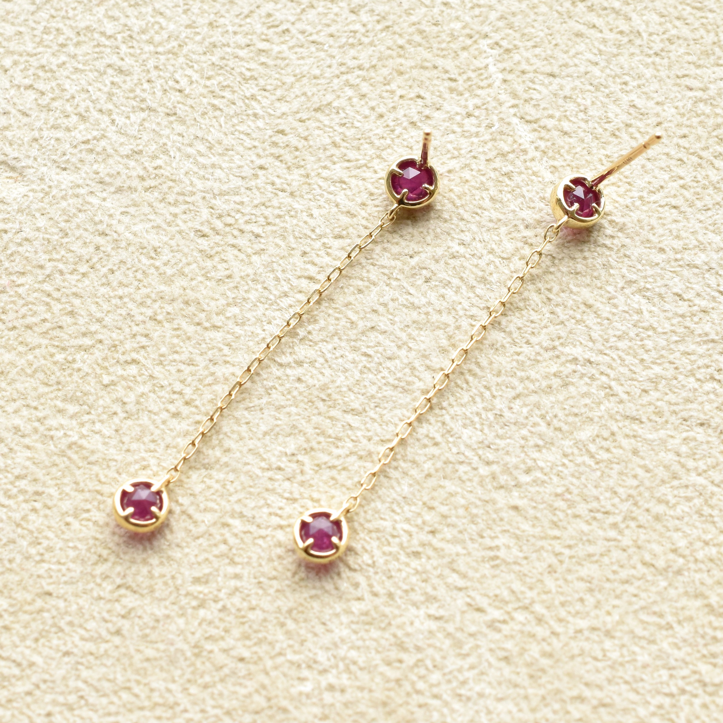 【109E0234-1-RB-TY】K10YG 紅寶石 耳釘(ルビー ピアス)