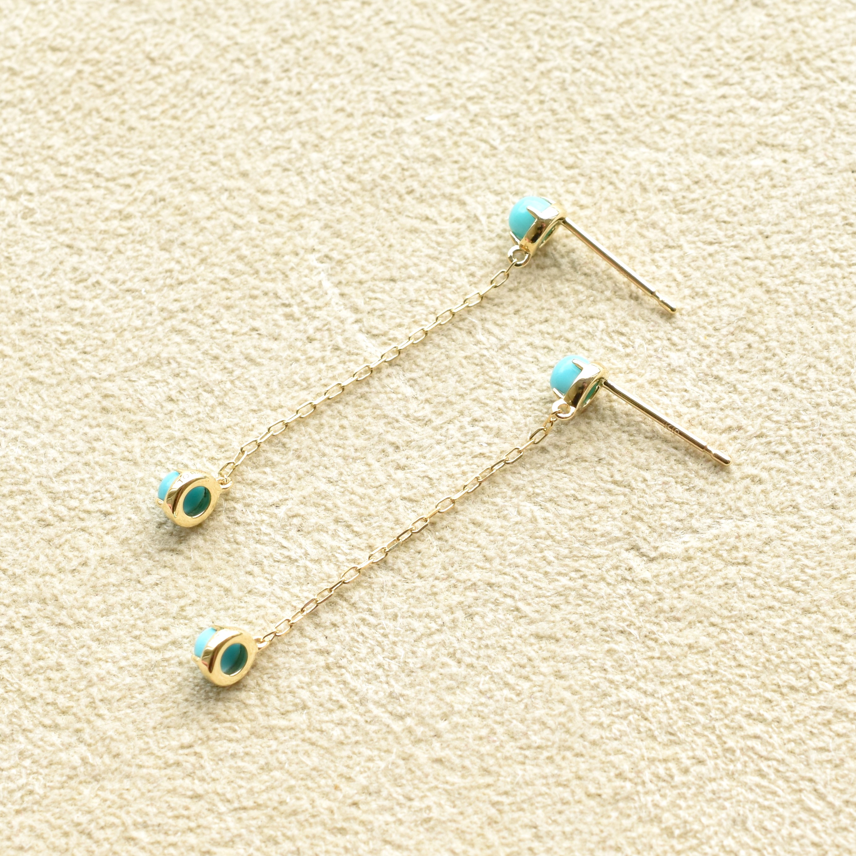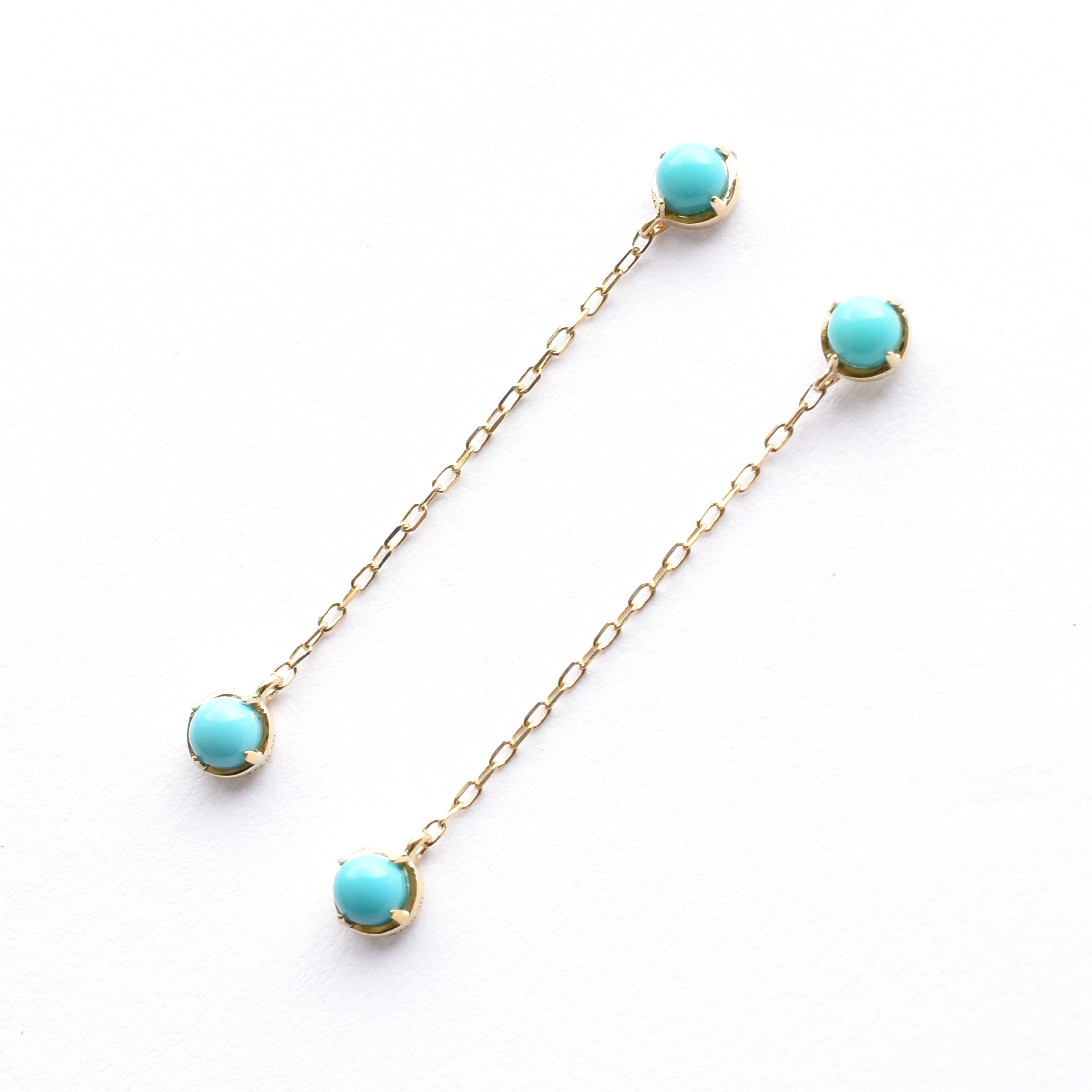 【109E0235-1-TQ-TY】K10YG 綠松石 耳釘(ターコイズ ピアス)