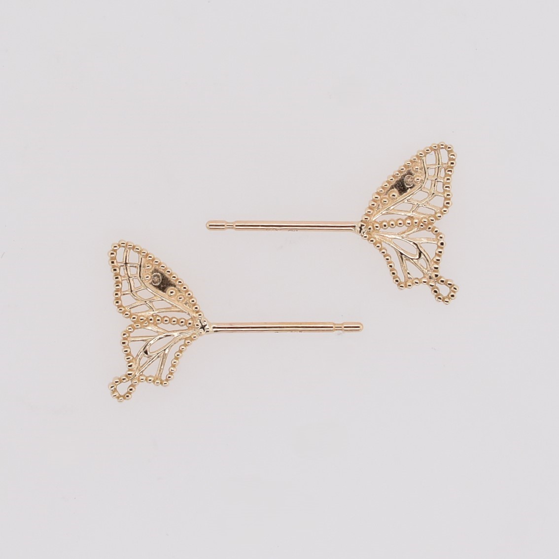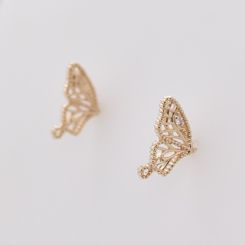【109E0239-1】K10YG 鑽石 蝶翼 耳釘(ダイヤモンド 蝶の翼 ピアス)