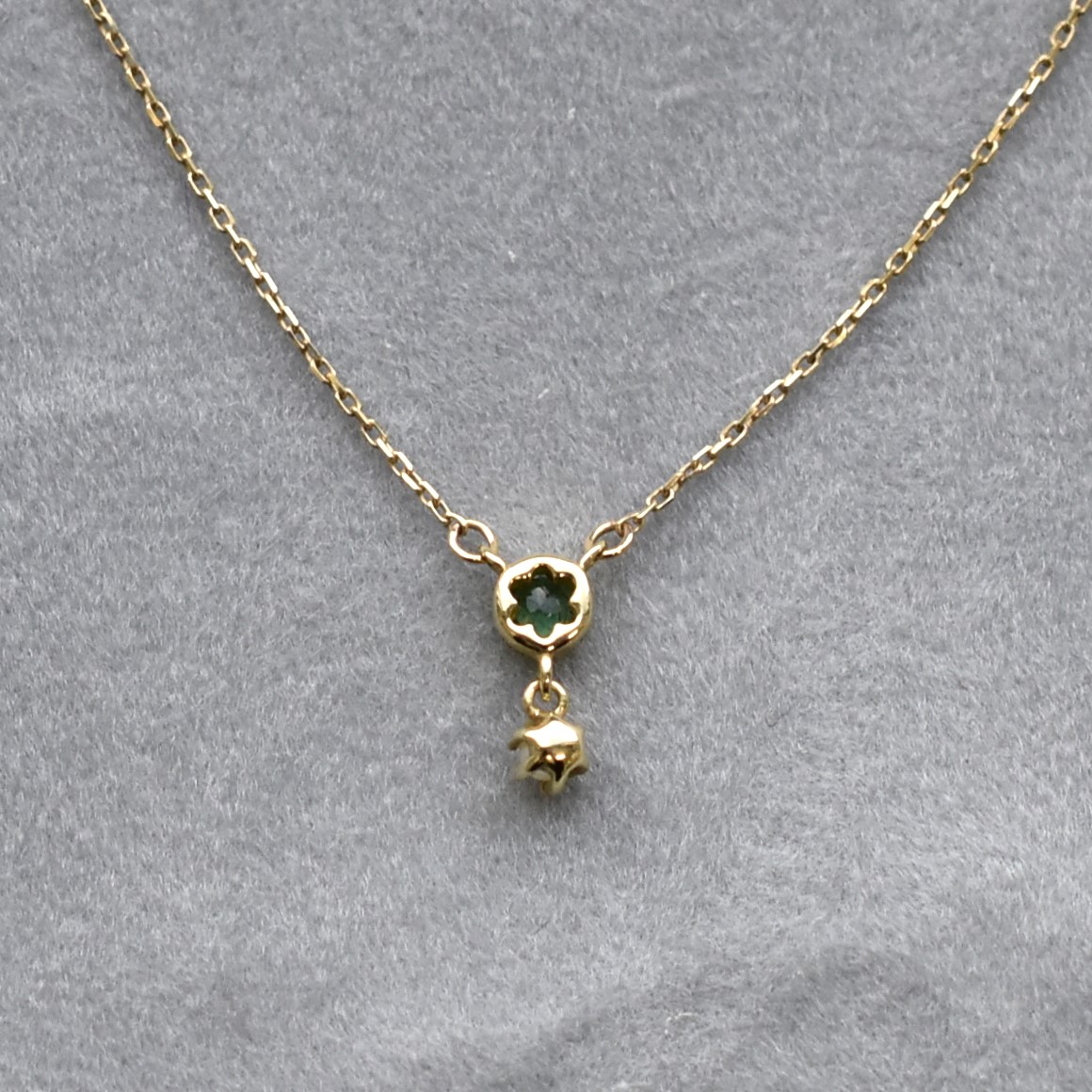 【109N0038-EM-TY】K10YG 祖母綠&鑽石 項錬(エメラルド&パール ネックレス)