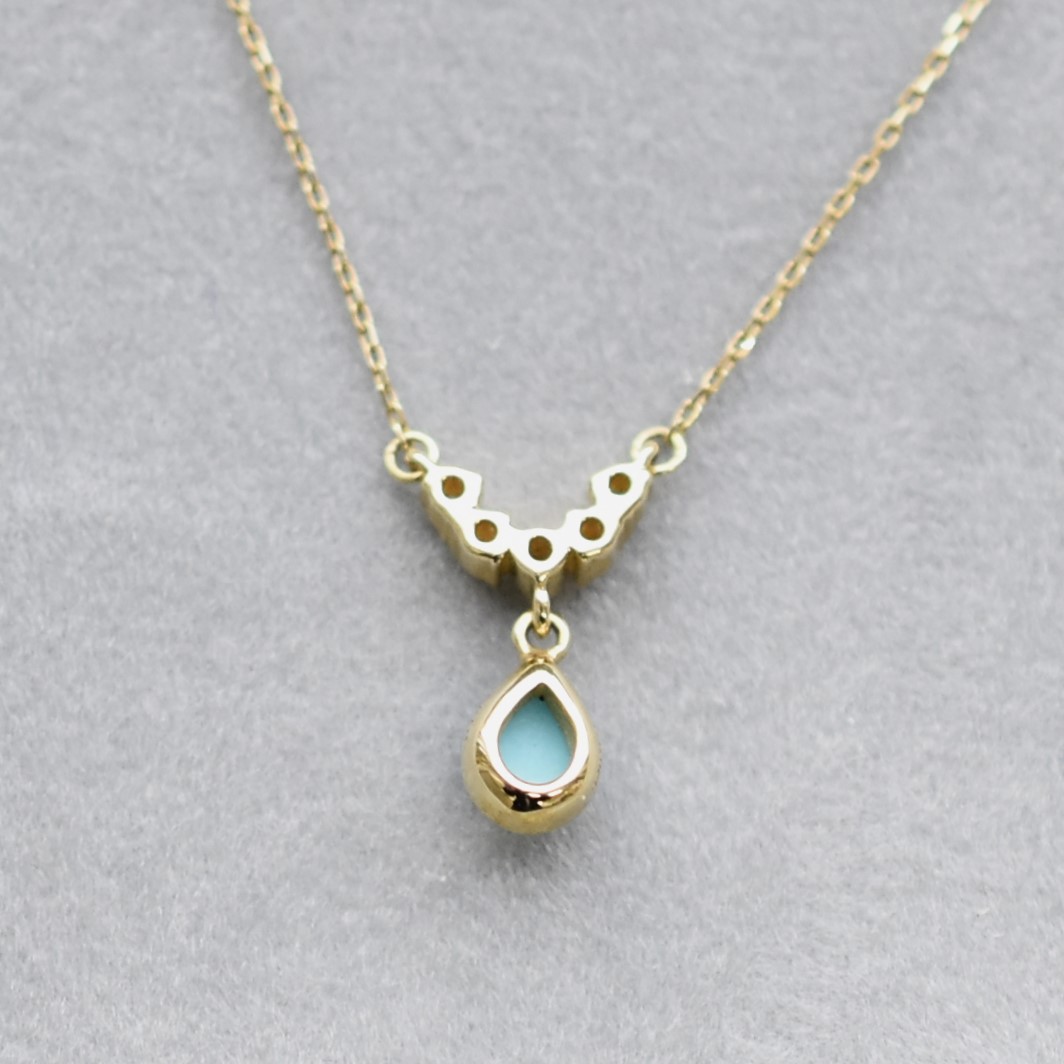 【109N0045-TQ-TY】K10YG 綠松石&鑽石 項錬(ターコイズ&ダイヤモンド ネックレス)