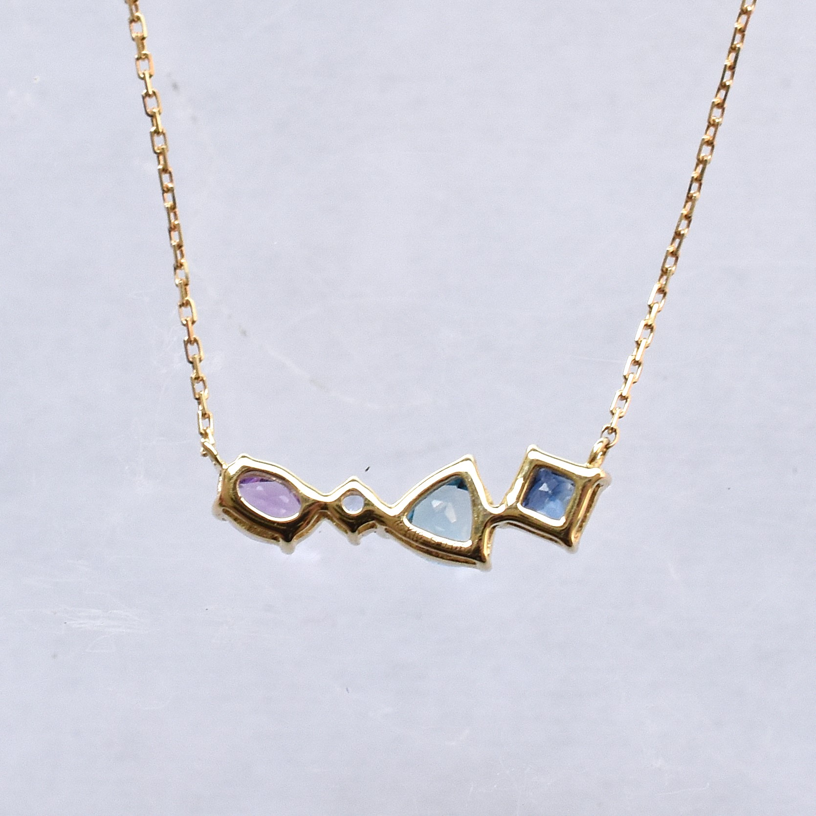 【109N0084-TY-1】K10YG 藍色彩寶4種 項錬(ブルー系石4種 ネックレス)