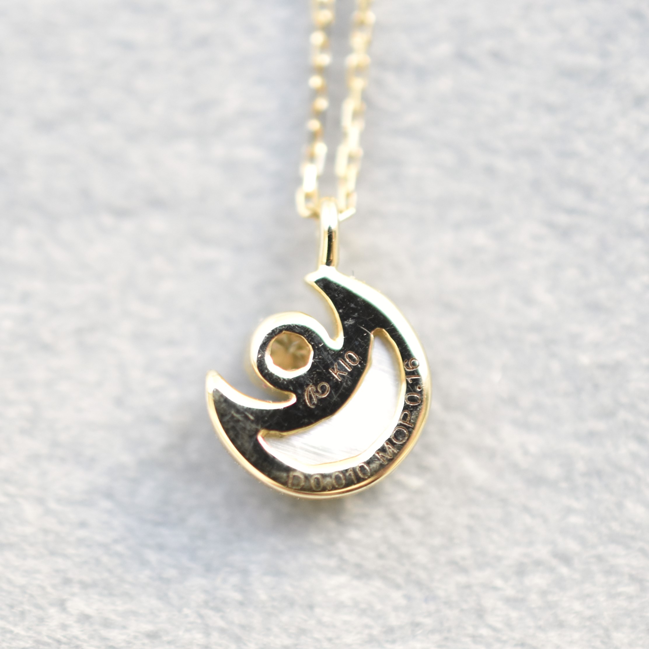 【109P0122-MOP】K10YG 白母貝&鑽石 月亮 項錬(白蝶貝&ダイヤモンド 月 ネックレス)