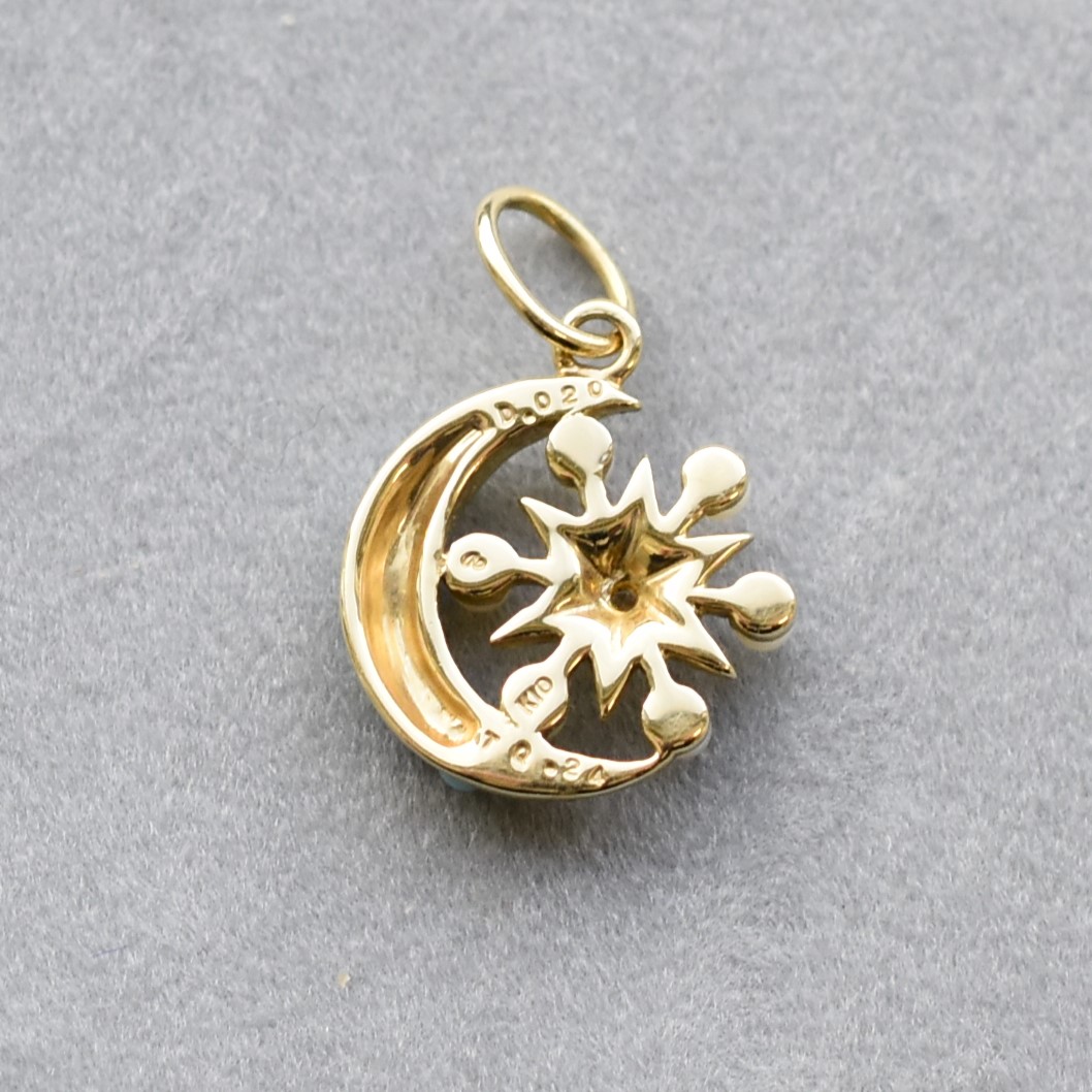 【109P0152-TQ】K10YG 綠松石&淡水珍珠 星月 吊墜(ターコイズ&淡水パール 星月夜 ペンダント)
