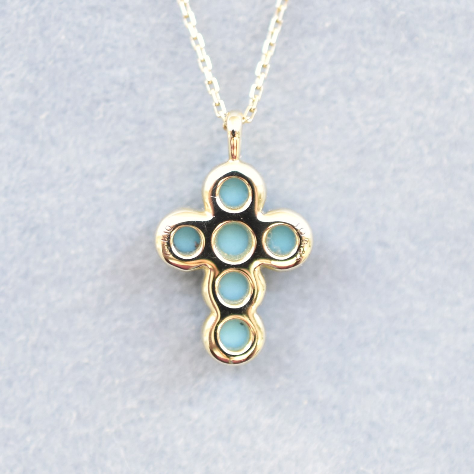 【109P0432-TQ】K10YG 綠松石 十字架 項錬(ターコイズ 十字架 ネックレス)