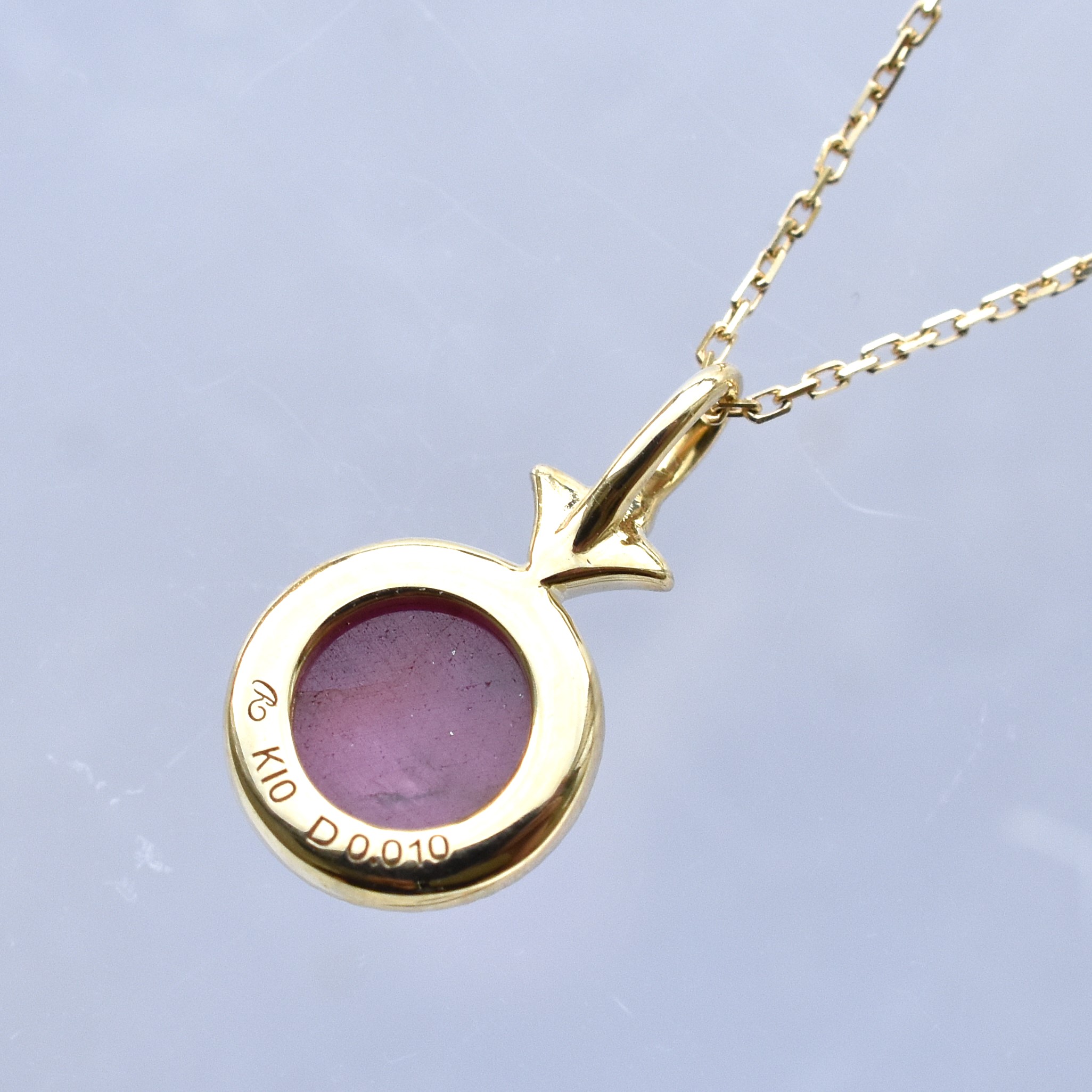 【109P0519-TY-1】K10YG 三層石(紅)&鑽石 項錬(トリプレット&ダイヤモンド ネックレス)