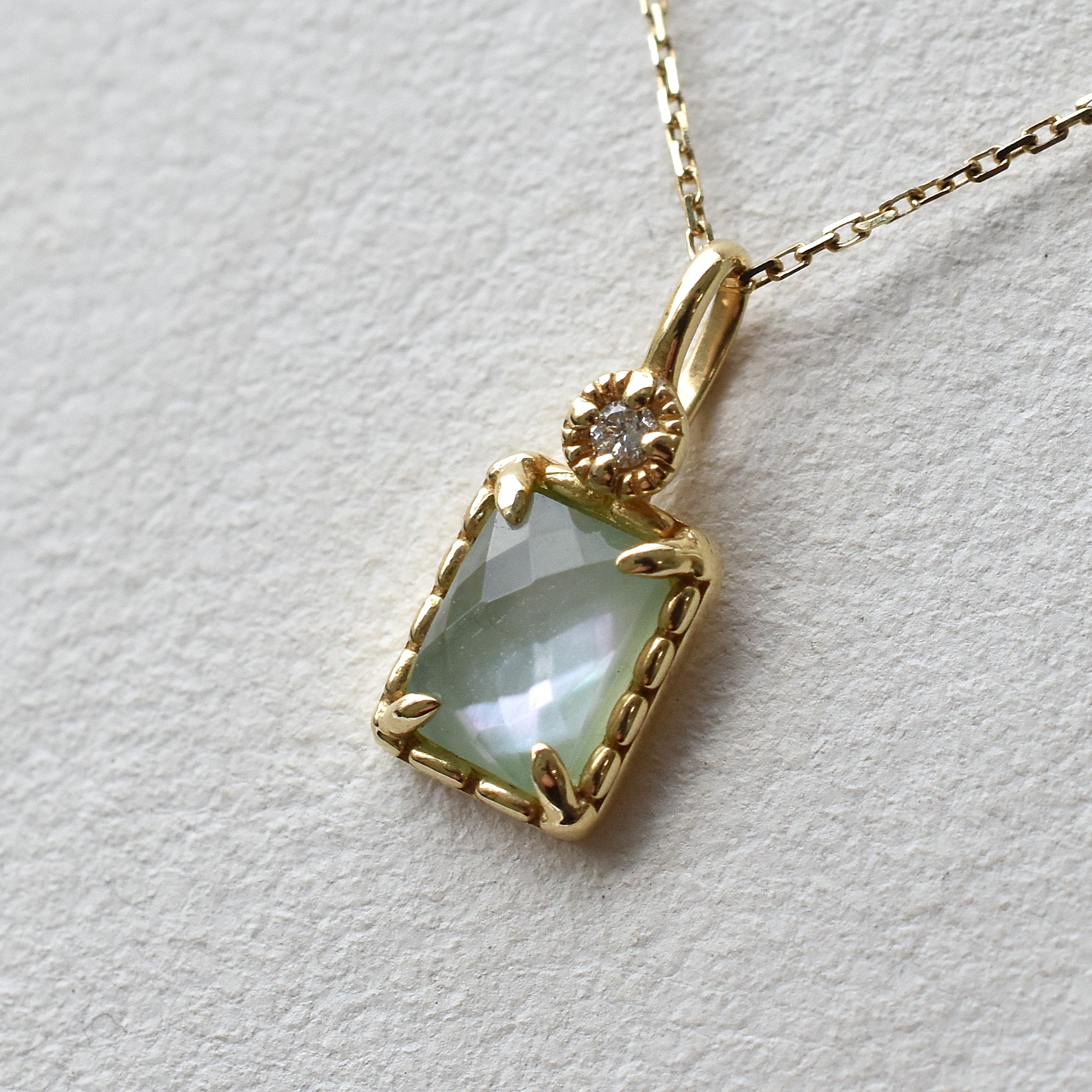 【109P0521-TY】K10YG 三層石&鑽石 香水瓶 項錬(トリプレット&ダイヤモンド 香水瓶 ネックレス)