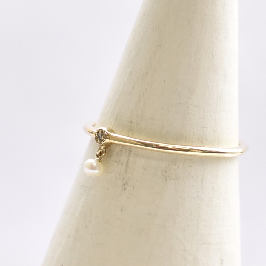 【109R0076】K10YG 鑽石&淡水珍珠 戒指(ダイヤモンド&淡水パール リング)