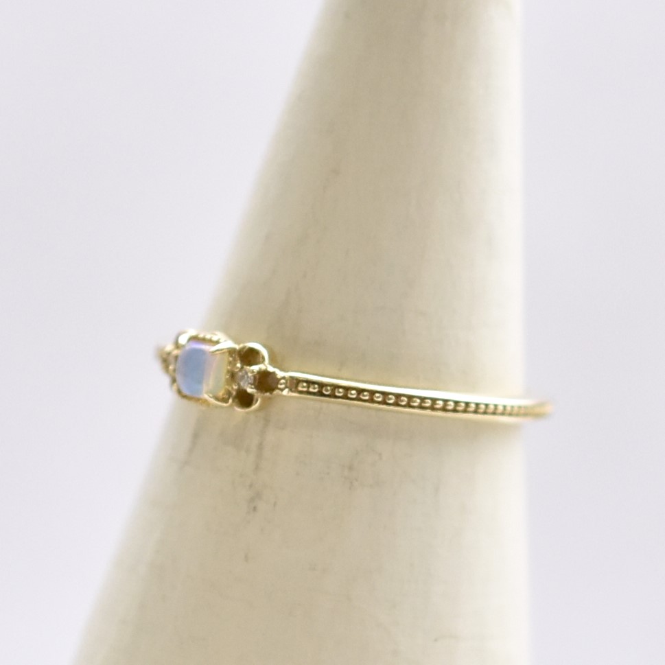【109R0160-OP】K10YG 蛋白石&鑽石 戒指(オパール&ダイヤモンド リング)
