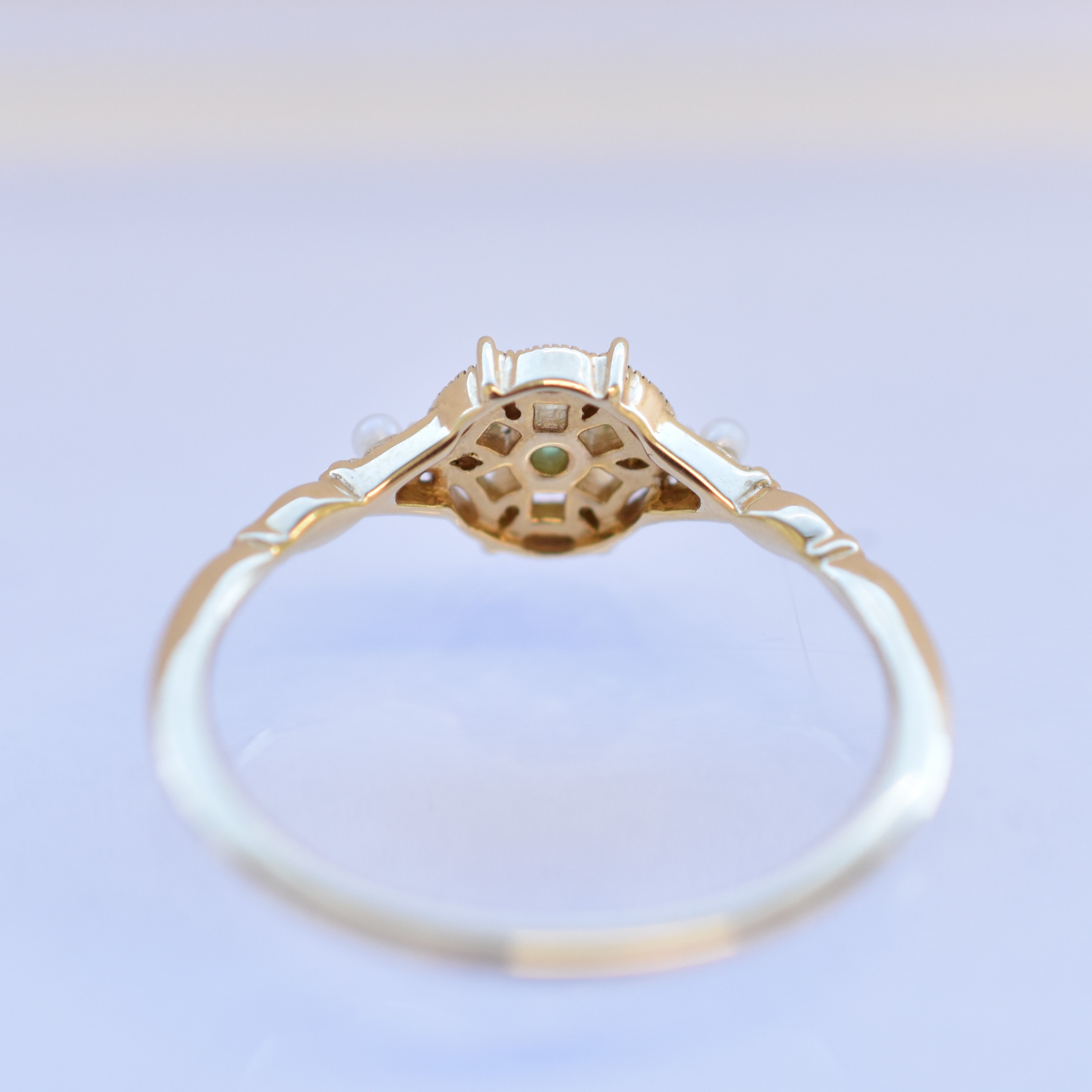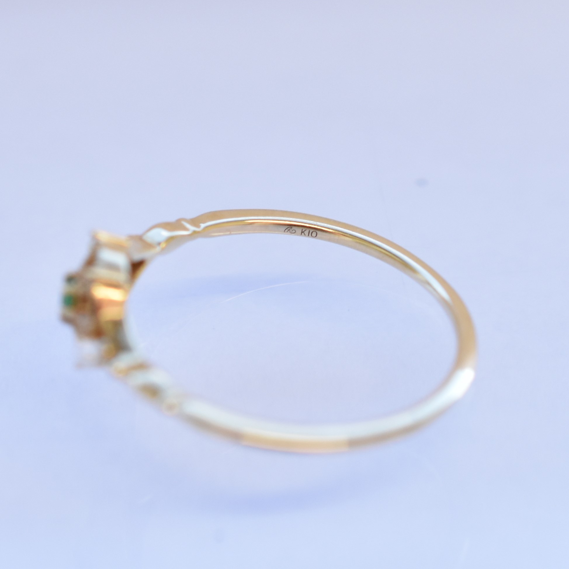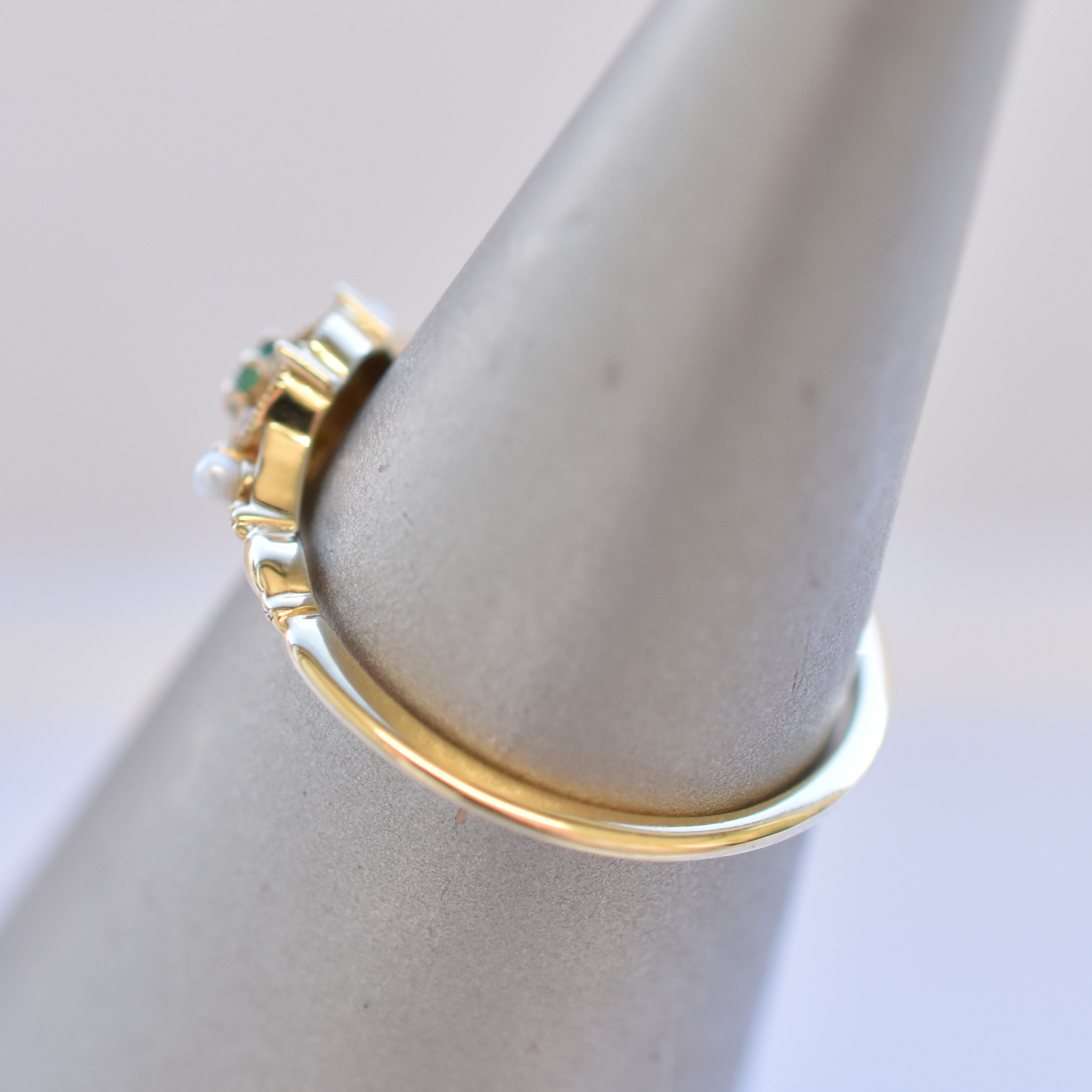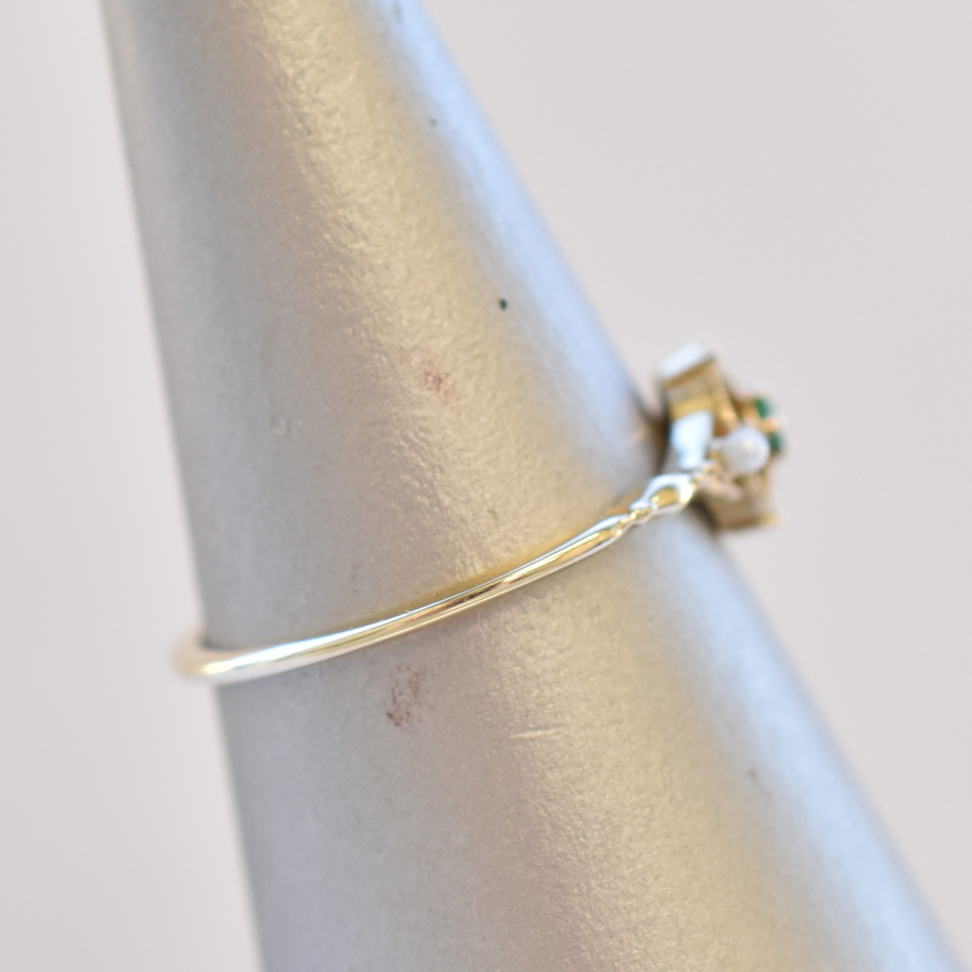 【109R0202-EMF】K10YG 祖母綠&淡水珍珠 戒指(エメラルド&淡水パール リング)