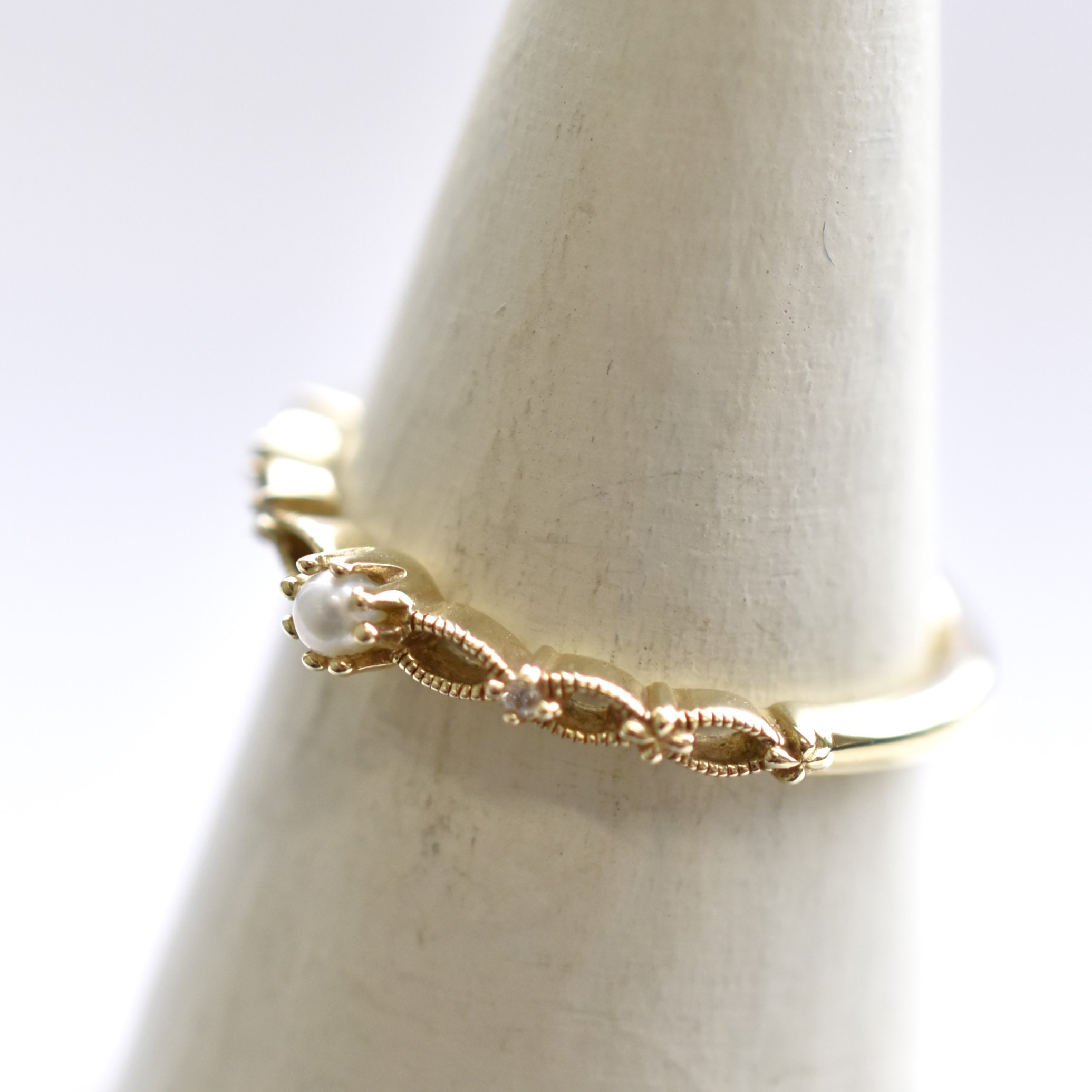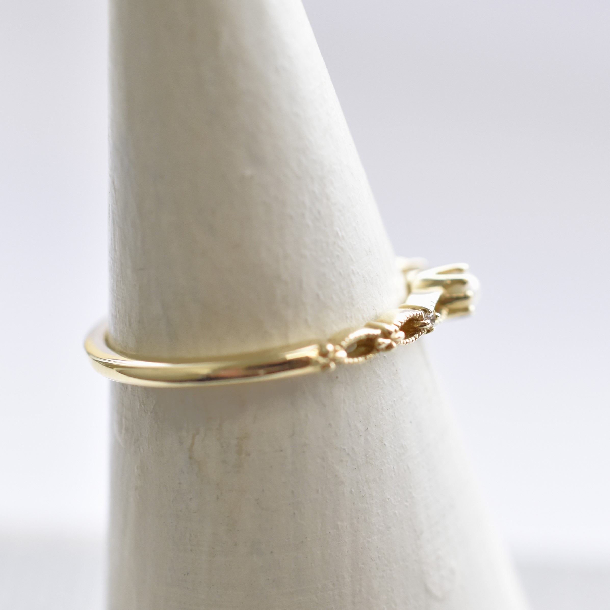 【109R0216】K10YG 鑽石&淡水珍珠 戒指(ダイヤモンド&淡水パール リング)