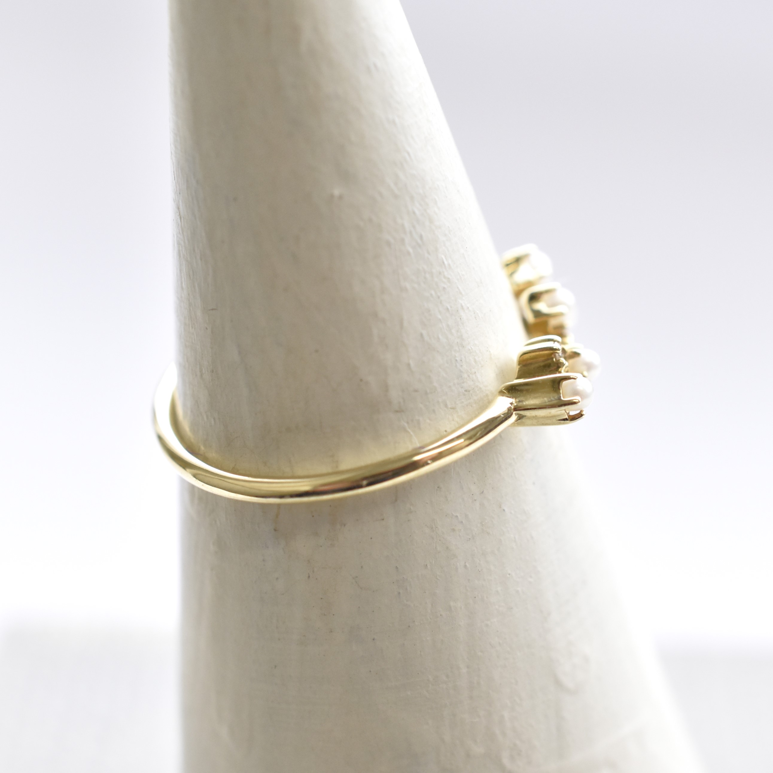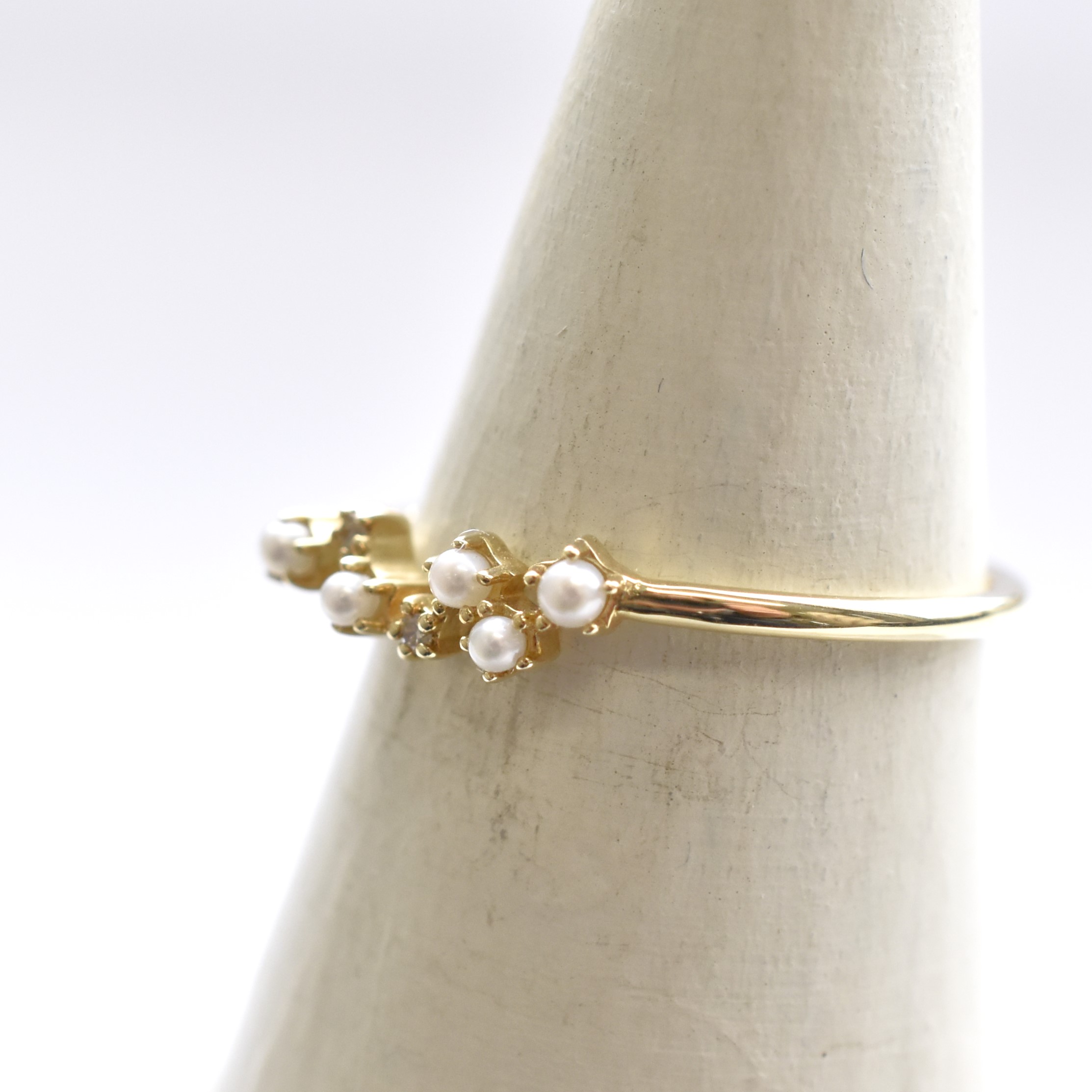 【109R0240】K10YG 鑽石&淡水珍珠 連星 戒指(ダイヤモンド&淡水パール リング)