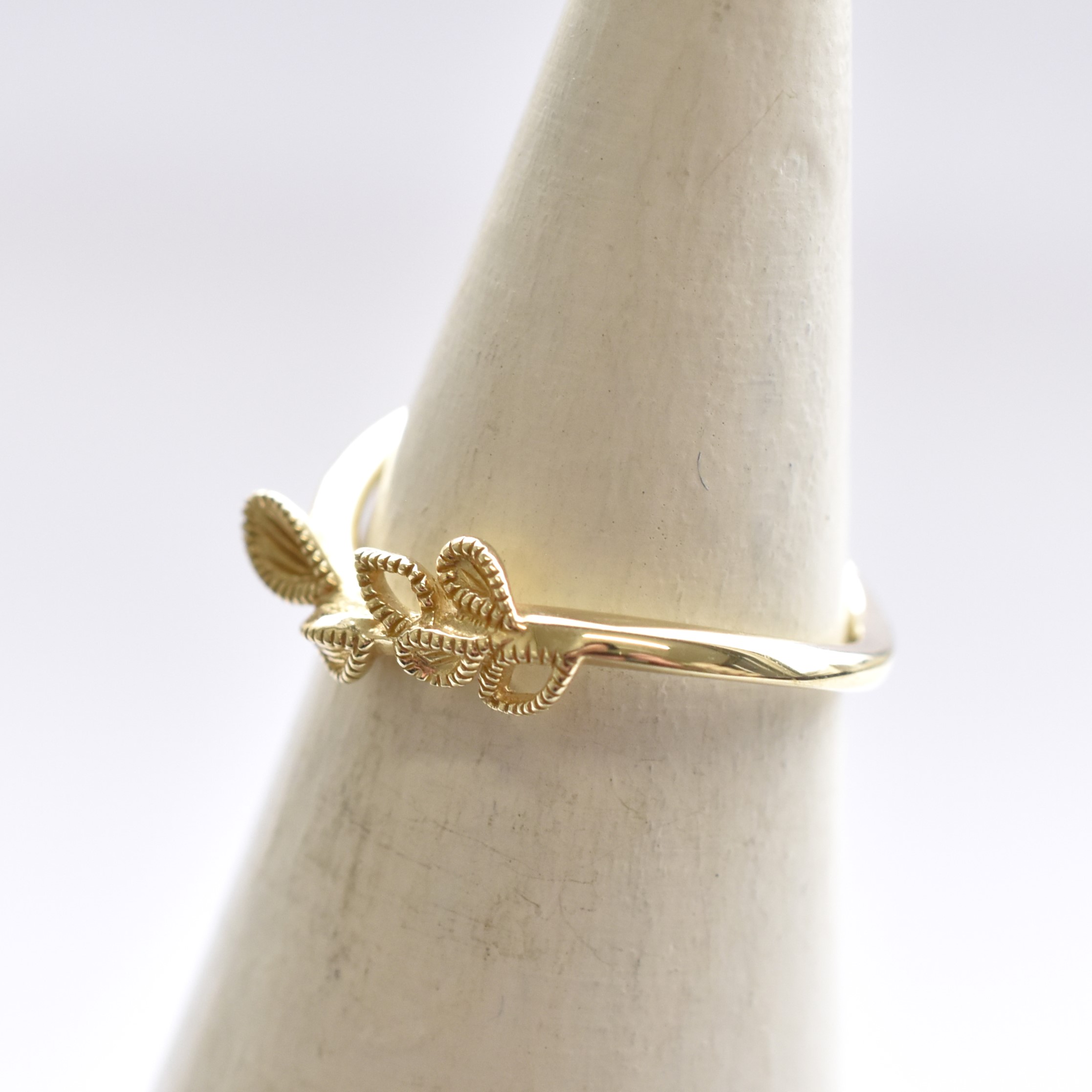 【109R0281】K10YG 樹葉 戒指(尾戒)(リーフ ピンキーリング)
