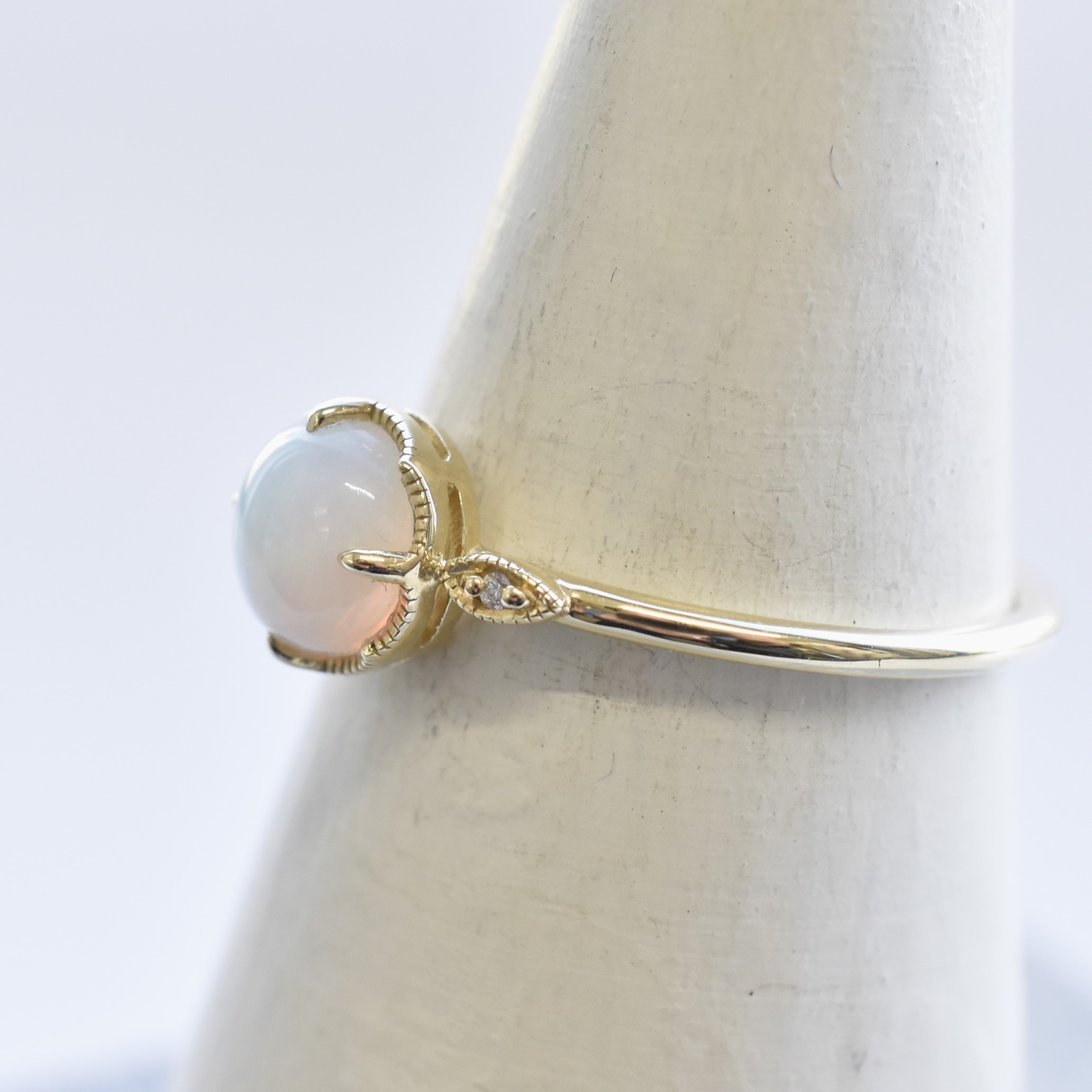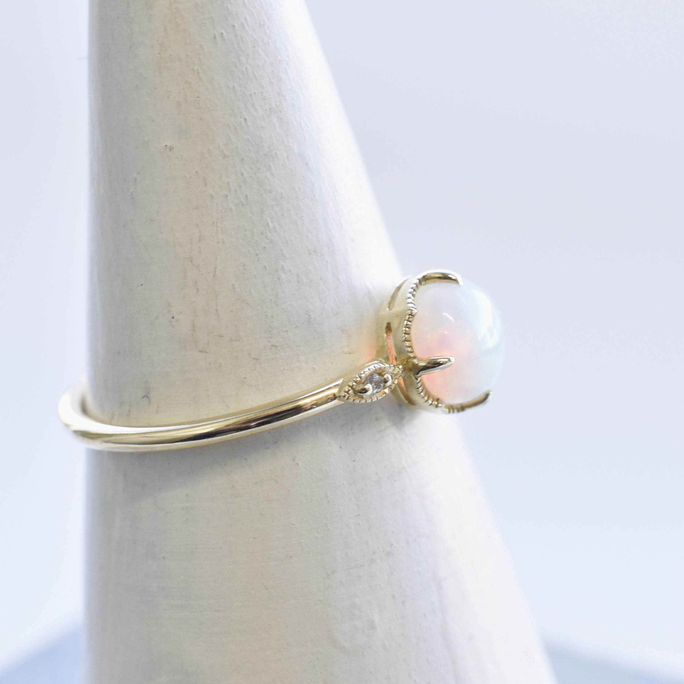 【109R0341-TY】K10YG 蛋白石&鑽石 戒指(オパール&ダイヤモンド リング)
