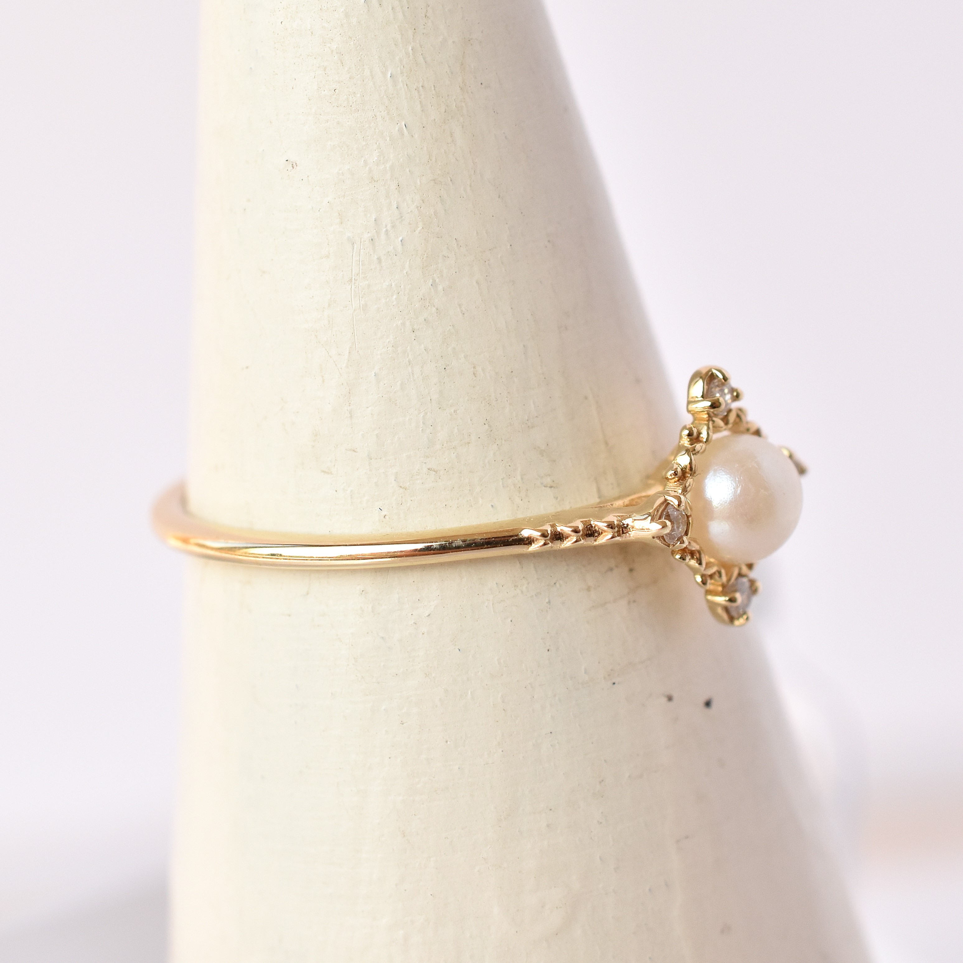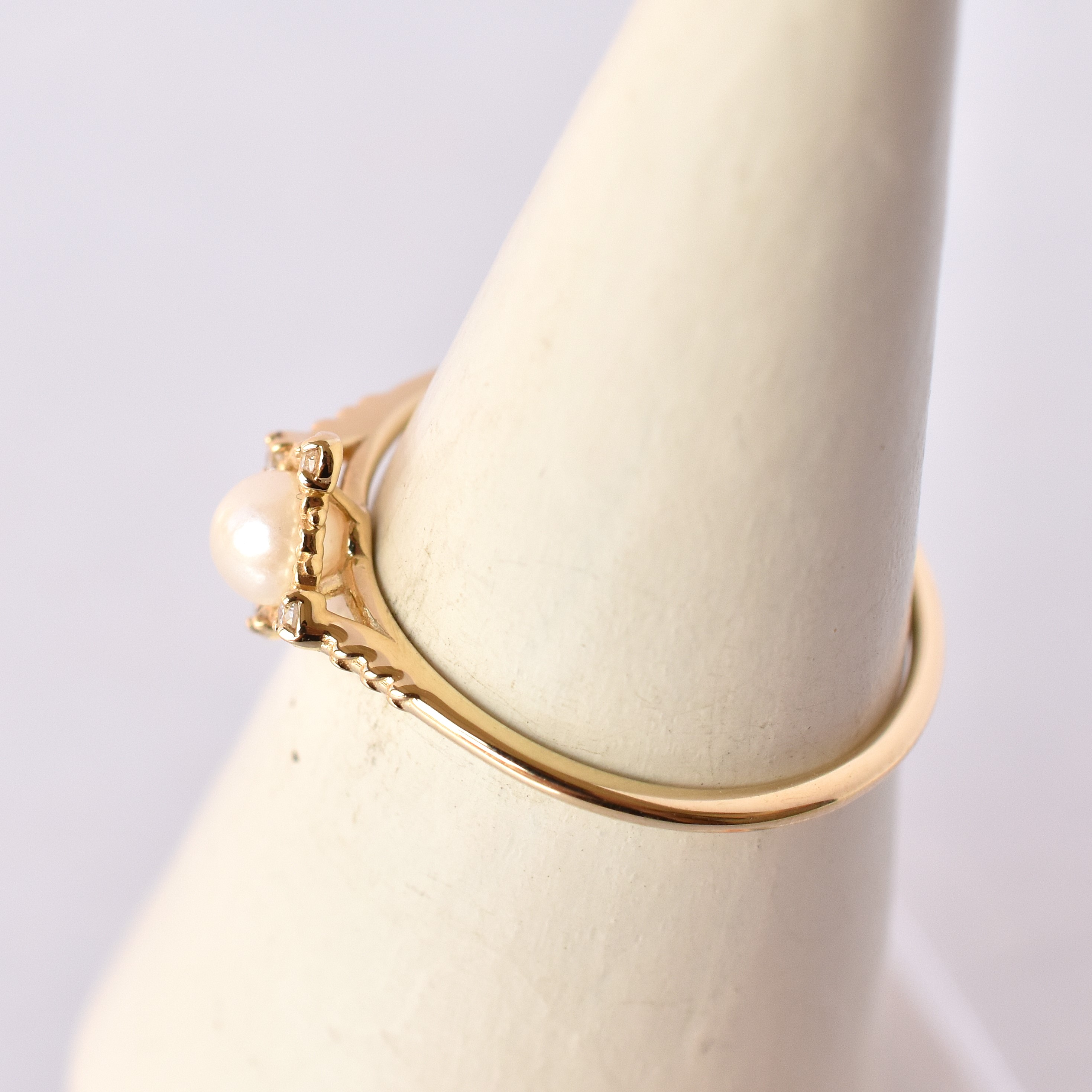 【109R0352-TY】K10YG 阿古屋珍珠&鑽石 戒指(アコヤパール&ダイヤモンド リング)