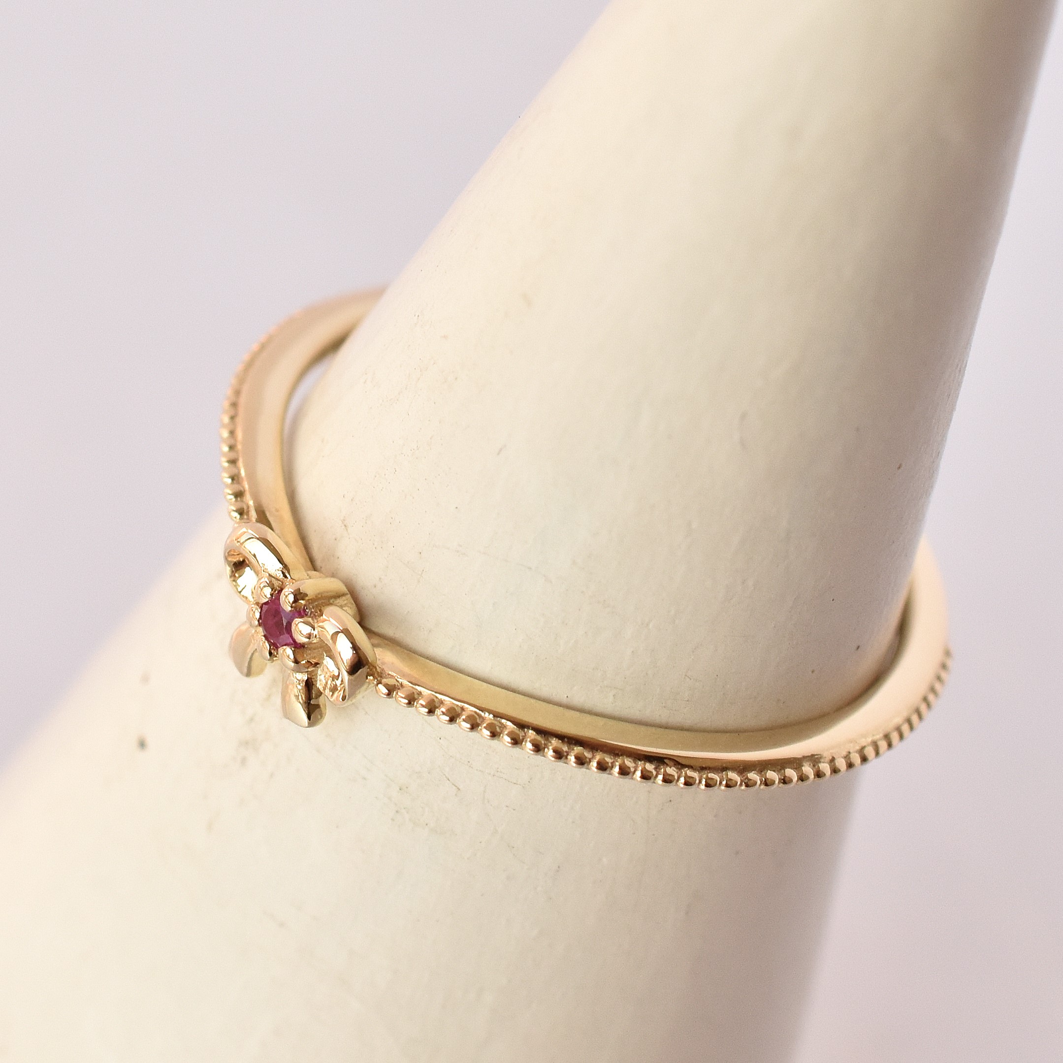 【109R0368-RB】K10YG 紅寶石 蝴蝶結 戒指(ルビー リボン リング)