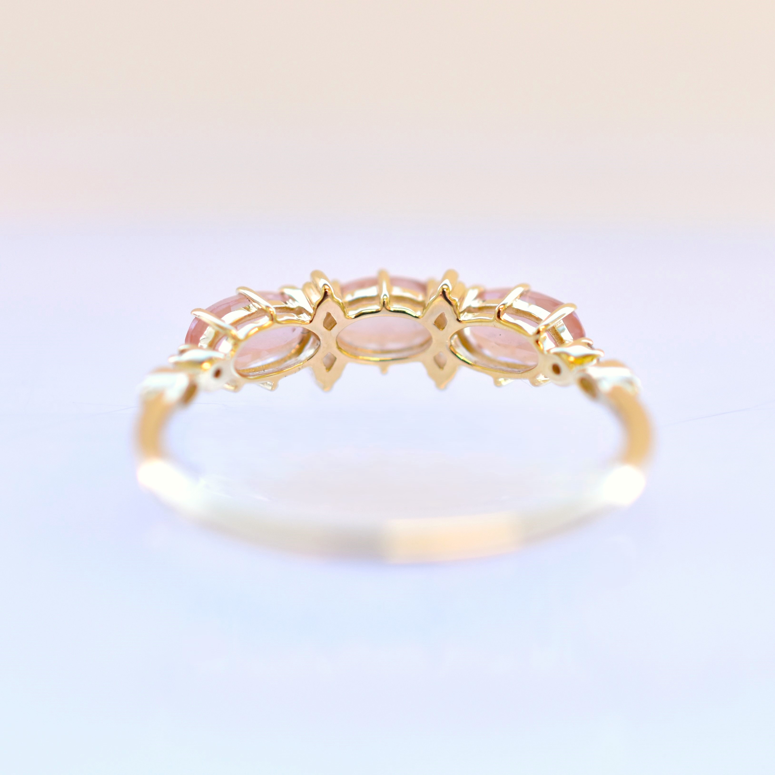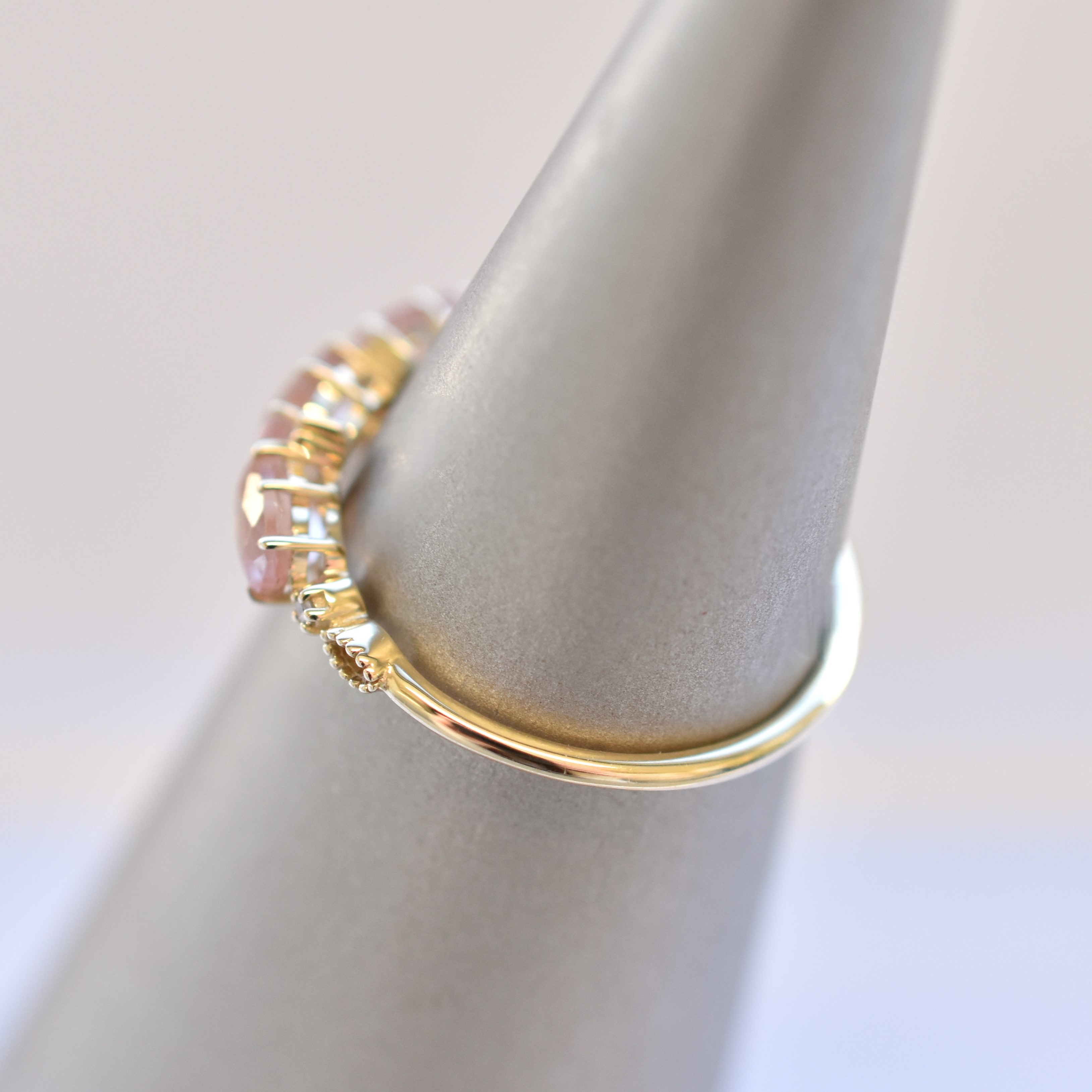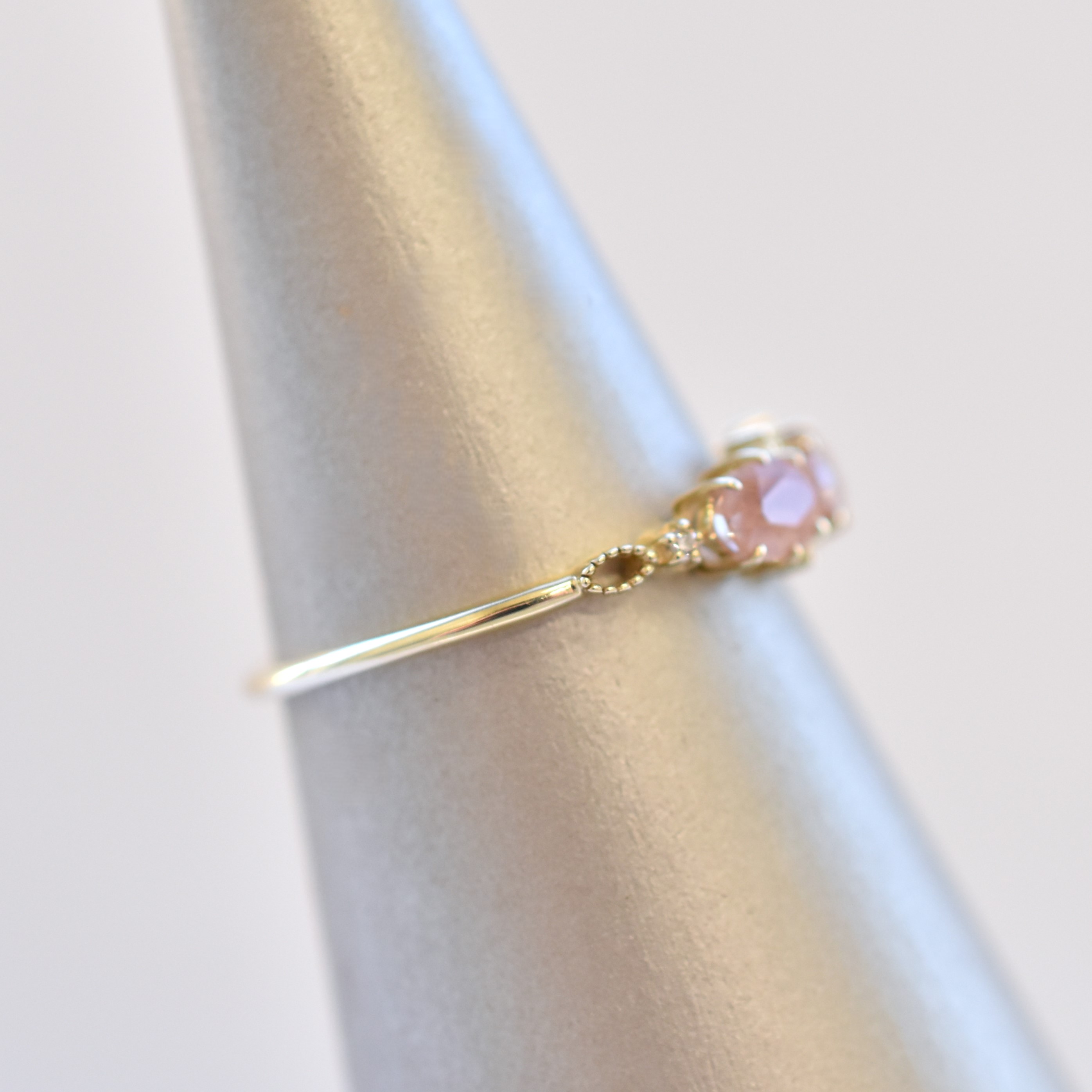 【109R0383-TY】K10YG 蜜桃太陽石&鑽石 戒指(ピーチサンストーン&ダイヤモンド リング)
