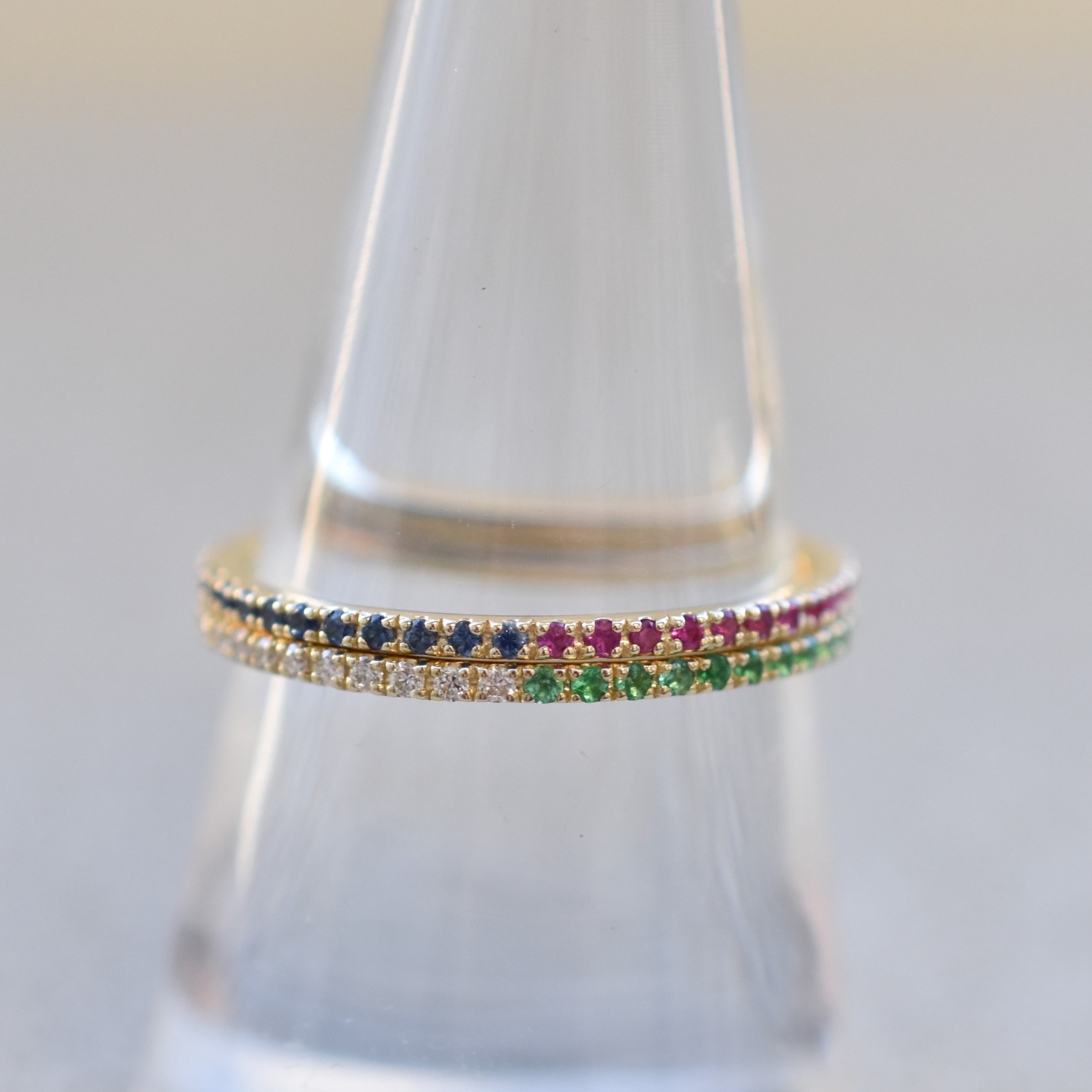 【109R0384-11-EMF】K10YG 鑽石&祖母綠 整圈 戒指(ダイヤモンド&エメラルド フルエタニティ リング)