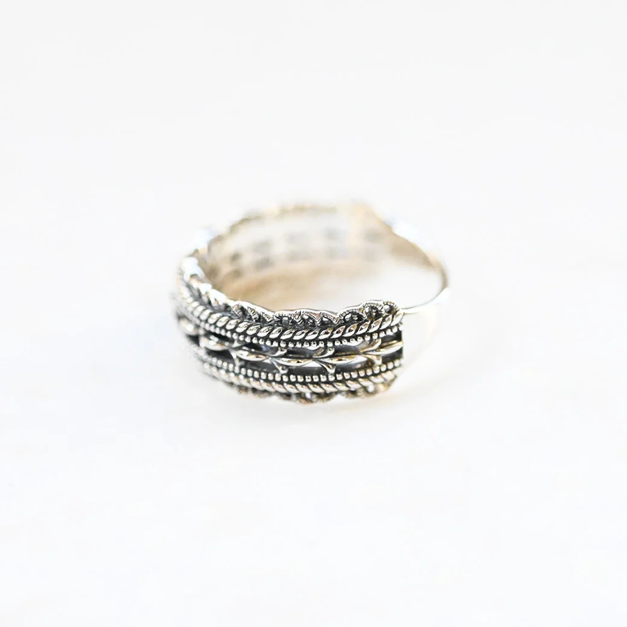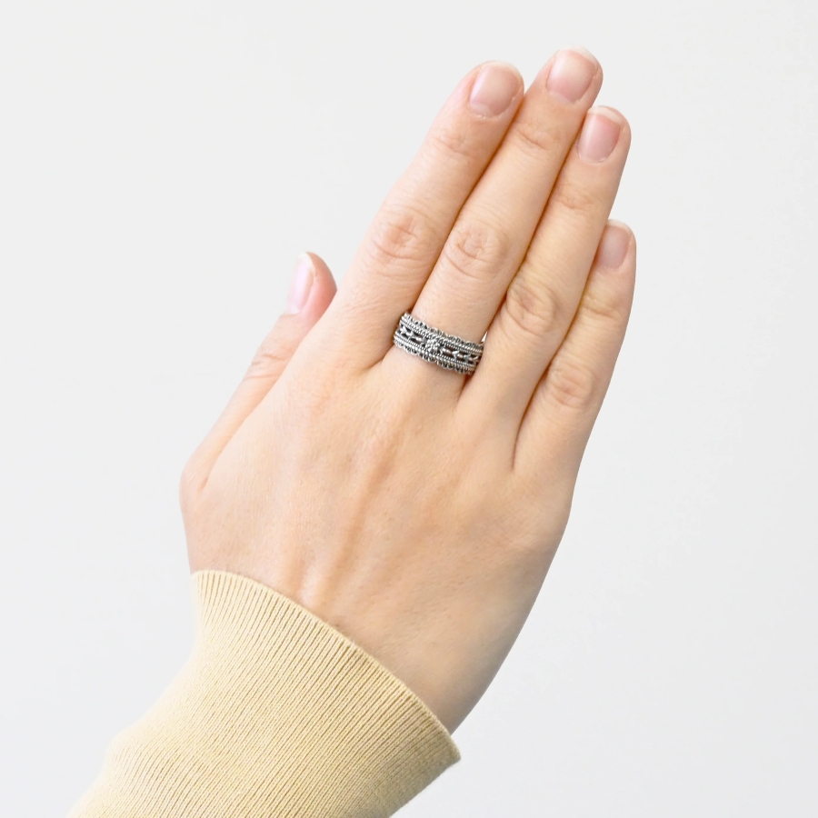 シンプルなようでいて、手元にしっかりと存在感を宿すリングです。