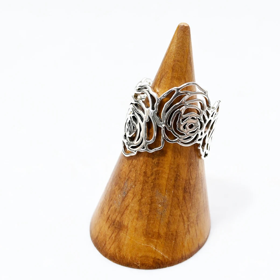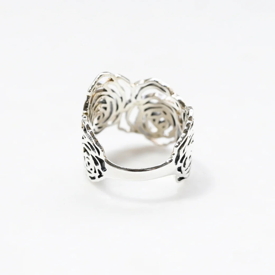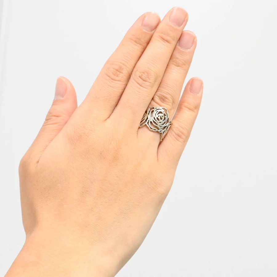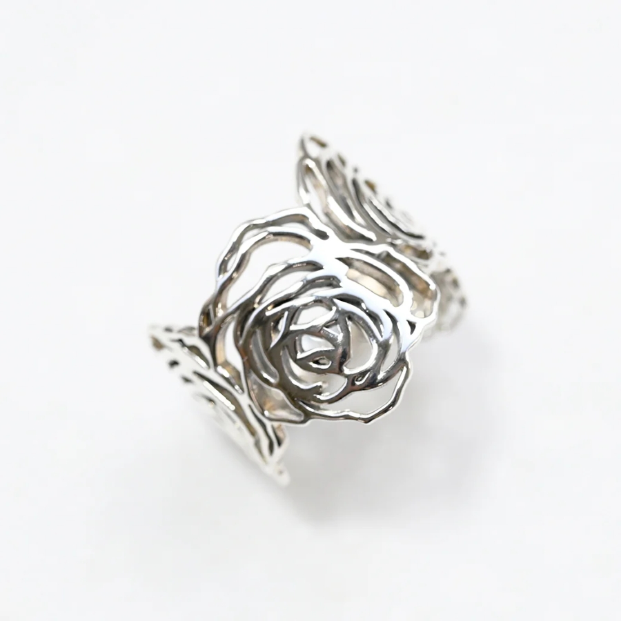 繊細に描かれた薔薇の花を、シルバー925で立体的に表現したリング。
