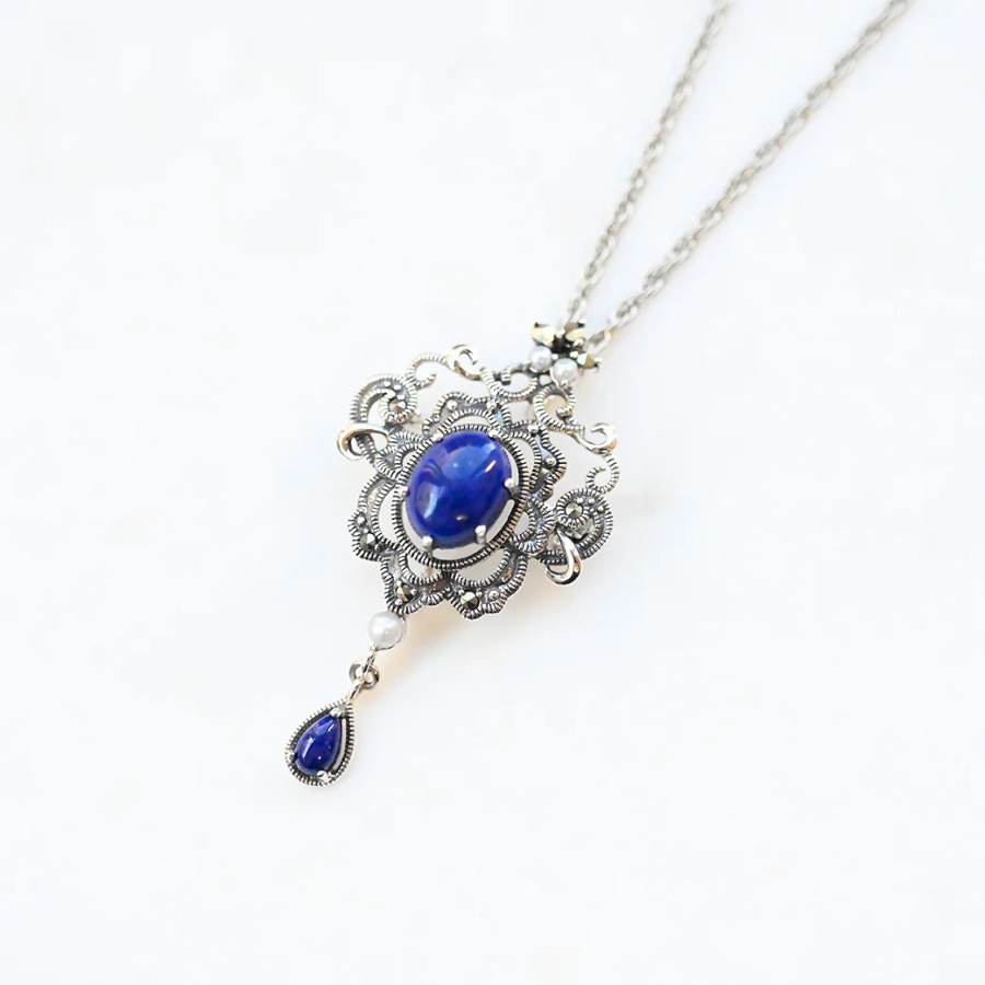 【204C0974-TY】SV ラピスラズリ ロイヤルアラベスク ブローチペンダント
