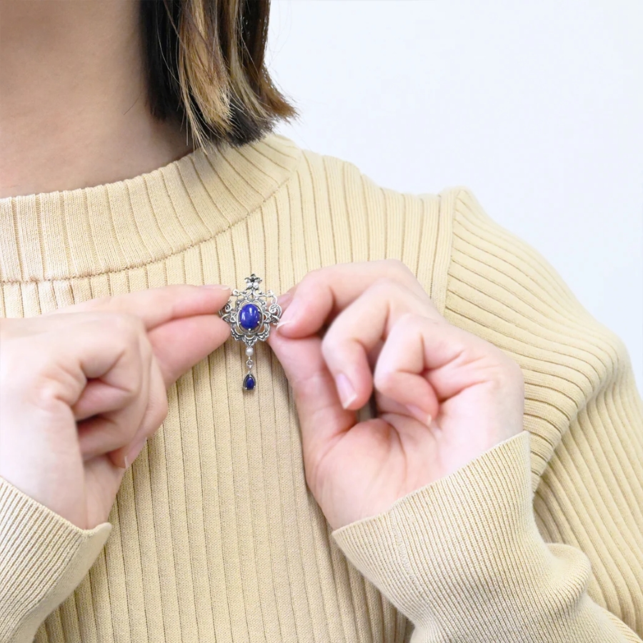 ペンダントとしてもブローチとしても楽しめる2way仕様で、フォーマルな場面から日常のおしゃれまで幅広く活躍します。