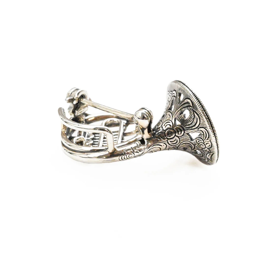 オーケストラの美しい響きを思わせる、上品なホルンのブローチです。優雅な曲線がシンフォニーの調べのようにやわらかく、クラシカルな魅力を添えてくれます。