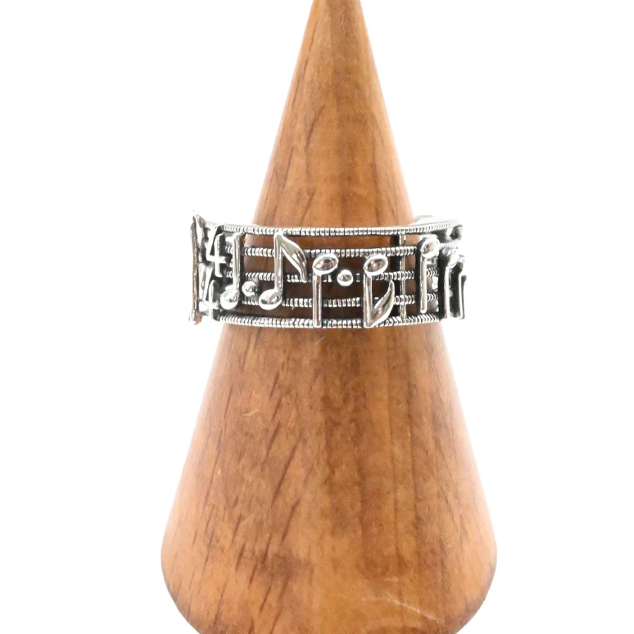 音符や五線譜の繊細なデザインが、指元にさりげない個性を演出。普段のおしゃれにはもちろん、特別な日のお出かけにも華を添えてくれるリングです。