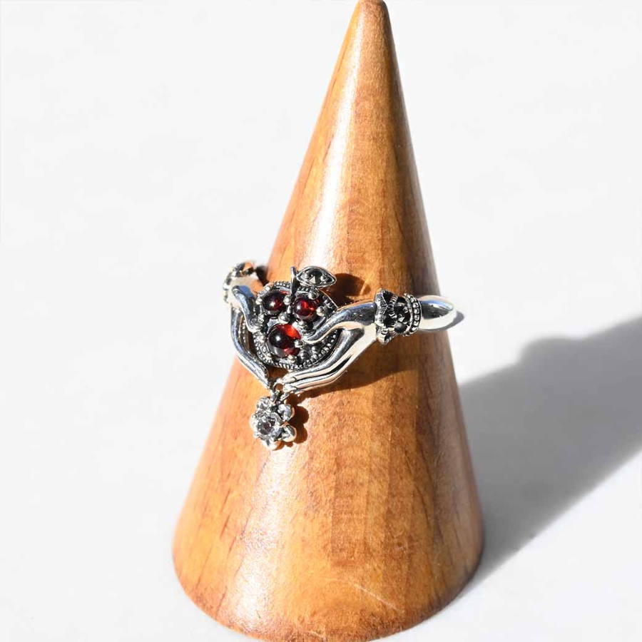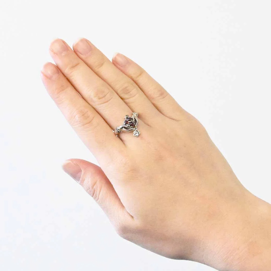 【202R1143】SV ガーネット&ホワイトトパーズ リンゴと手の リング