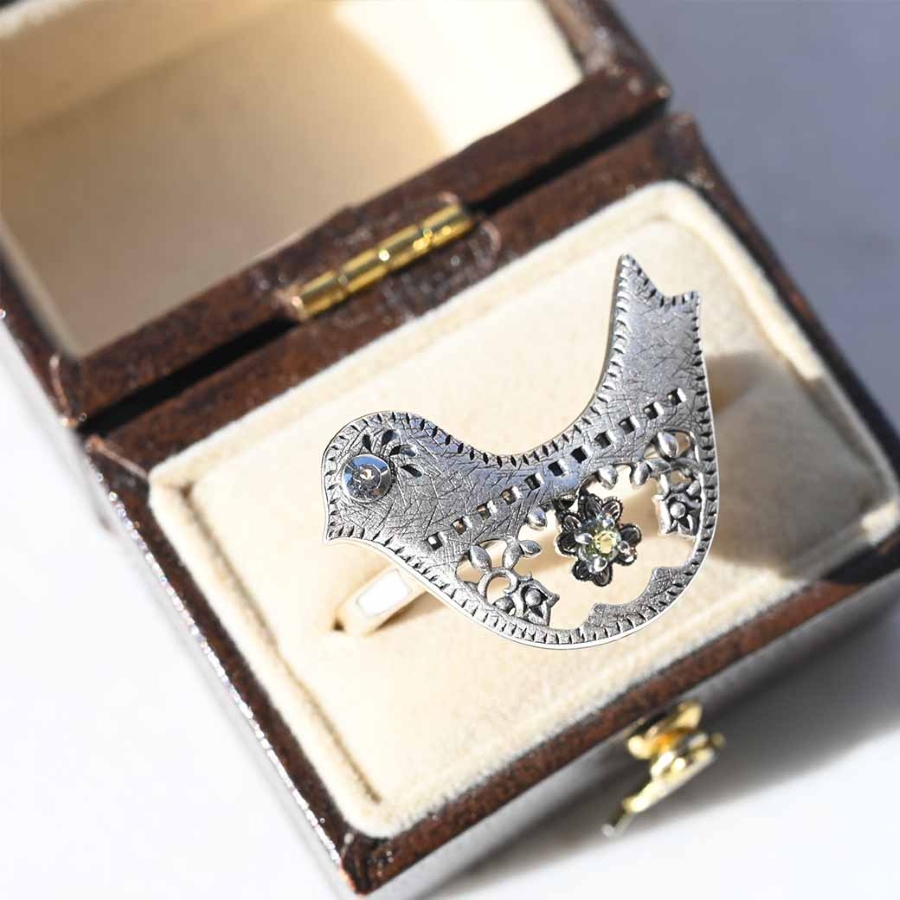 平和と幸福を象徴する鳩をモチーフにした、心温まるシルバーリングです。