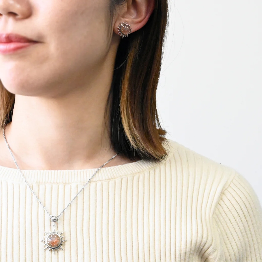 繊細なシルバー細工と温かみのある天然石が織りなす太陽モチーフのジュエリー。